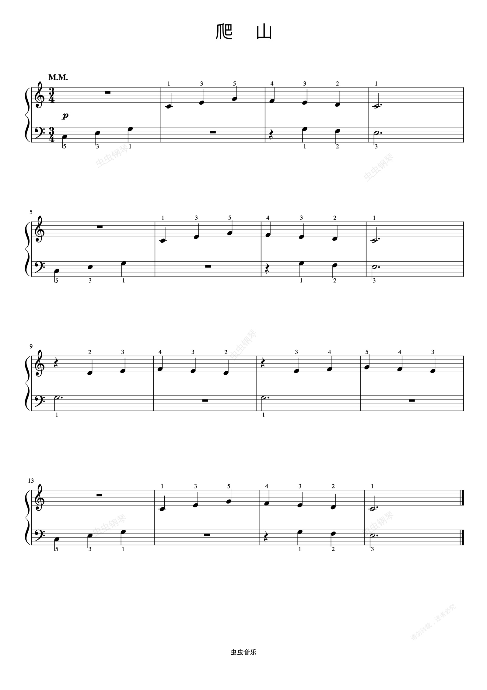 钢琴谱:爬山《约翰汤普森 现代钢琴教程1》