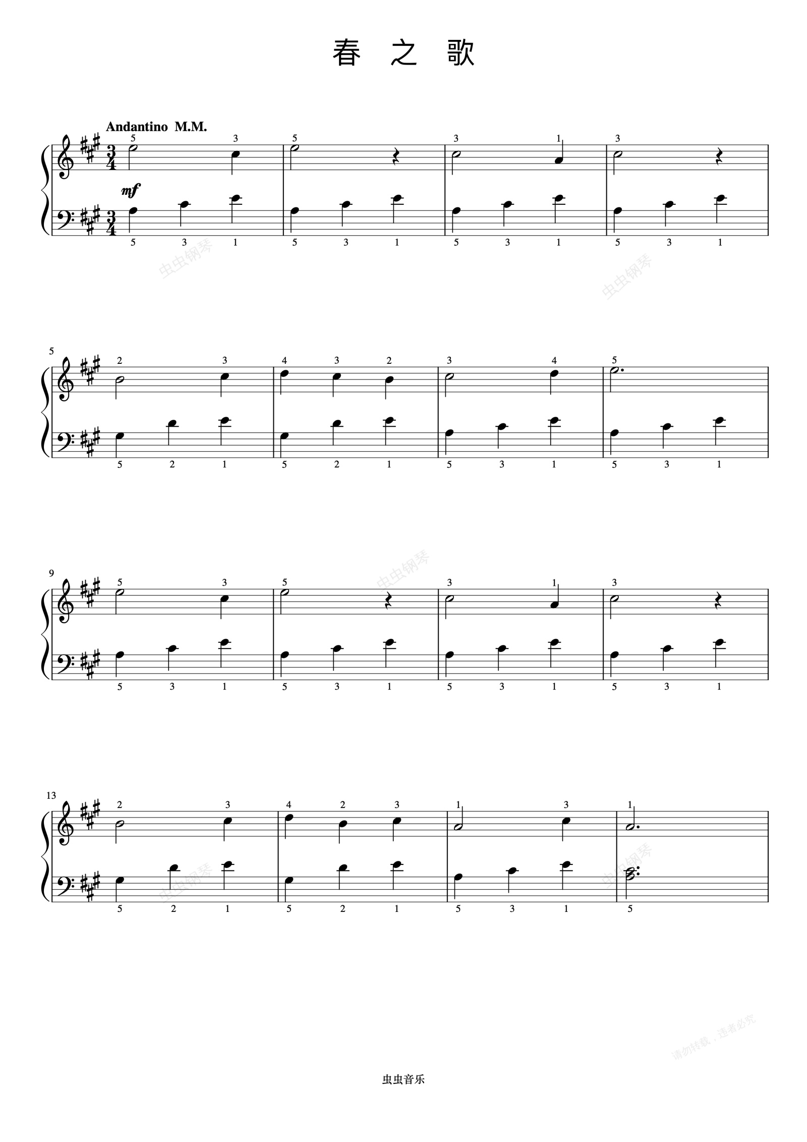 钢琴谱:春之歌《约翰汤普森 现代钢琴教程1》