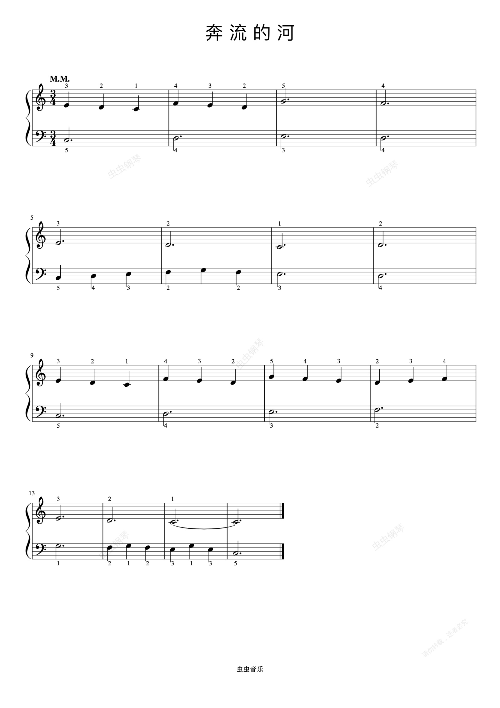 钢琴谱:奔流的河《约翰汤普森 现代钢琴教程1》