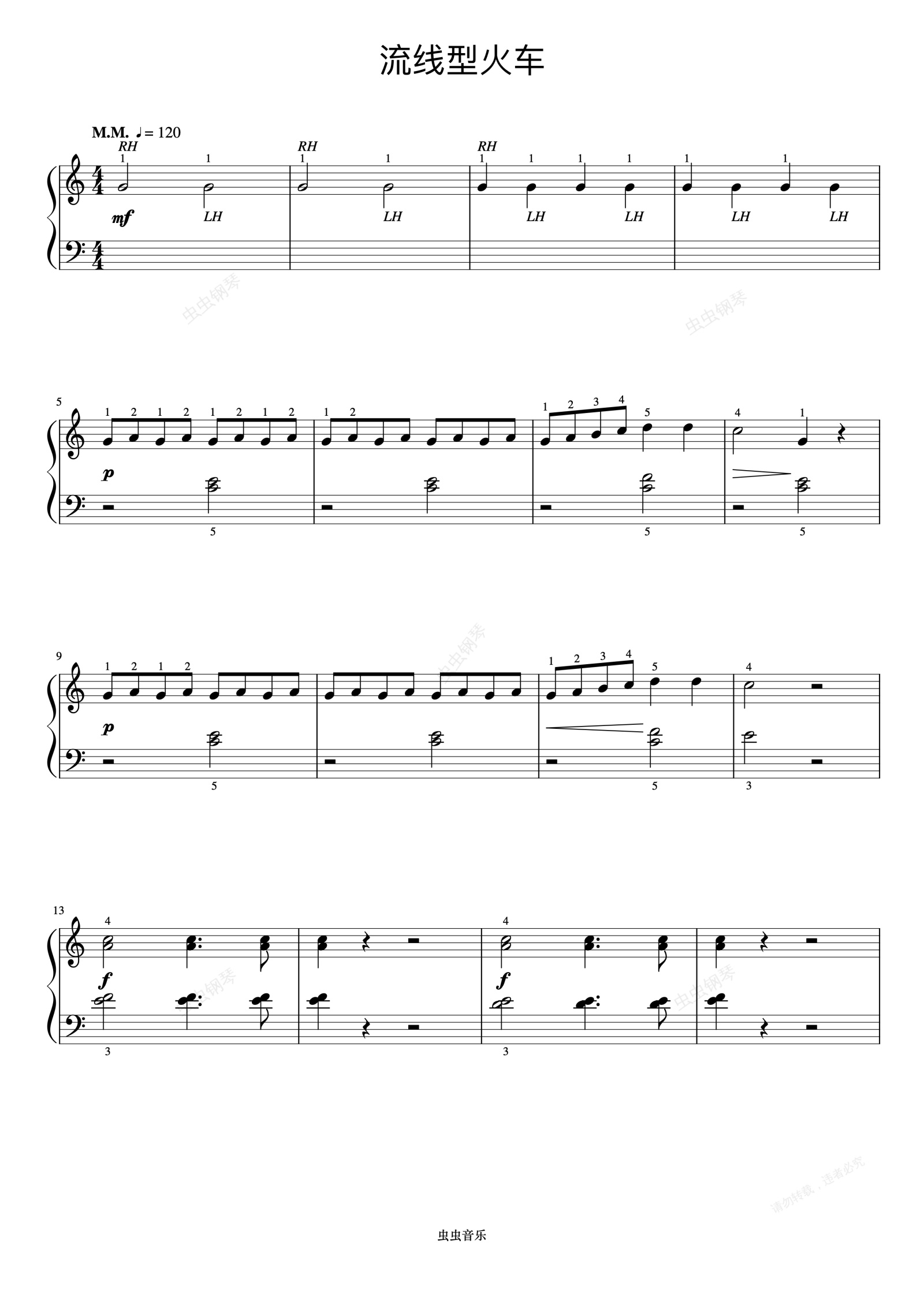 钢琴谱:流线型火车《约翰汤普森 现代钢琴教程1》