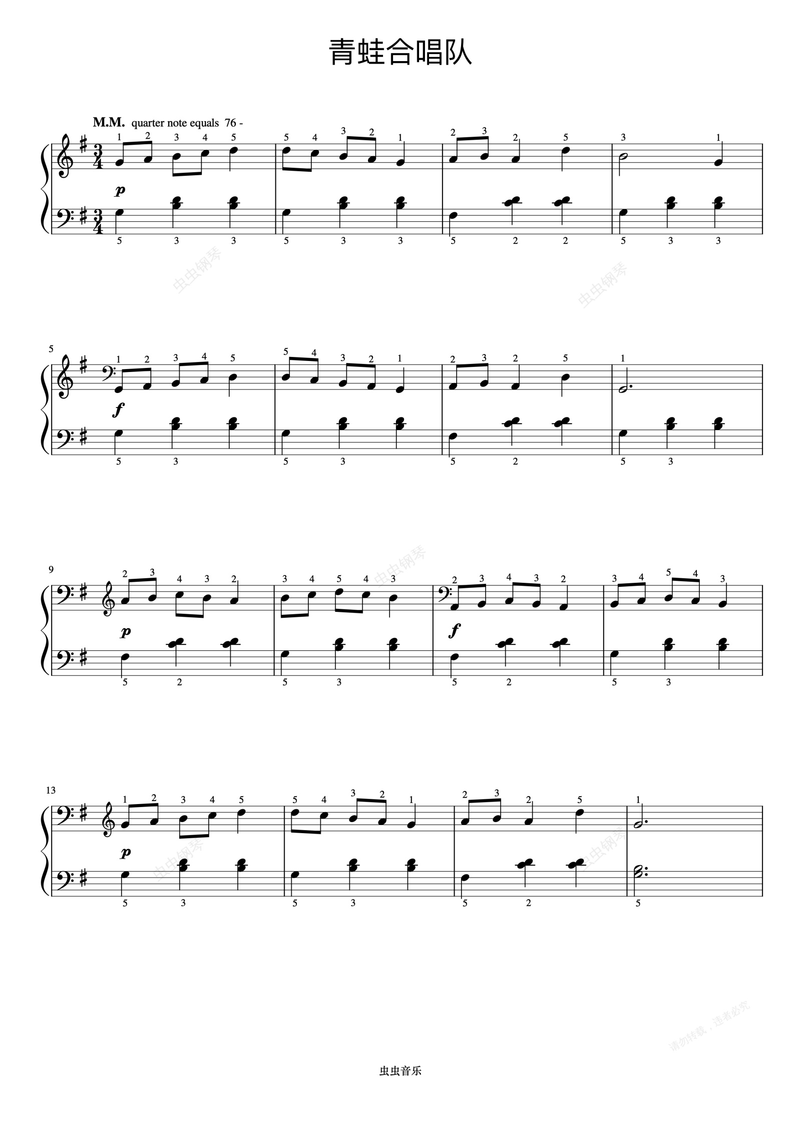 钢琴谱:青蛙合唱队《约翰汤普森 现代钢琴教程1》