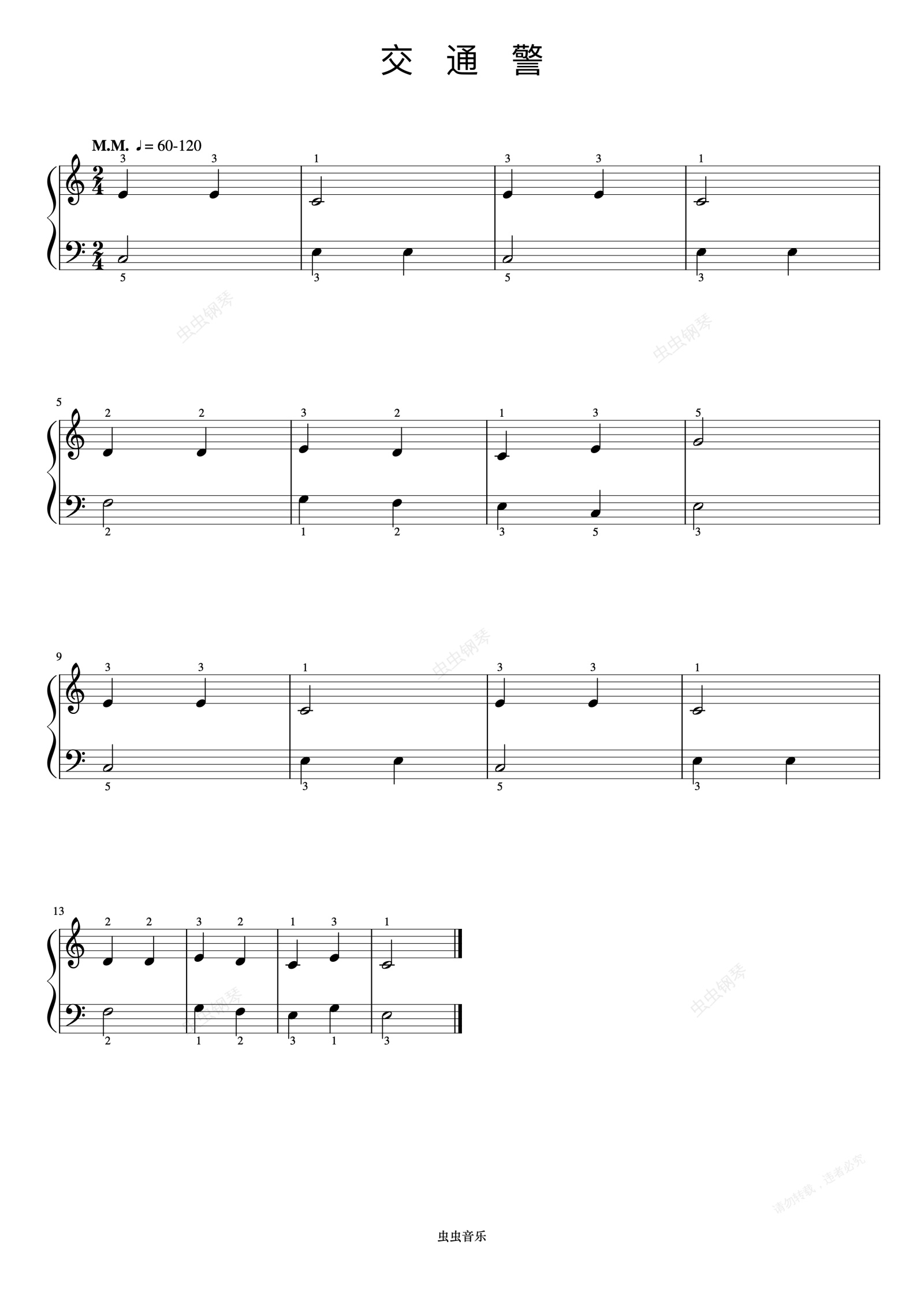 钢琴谱:交通警《约翰汤普森 现代钢琴教程1》