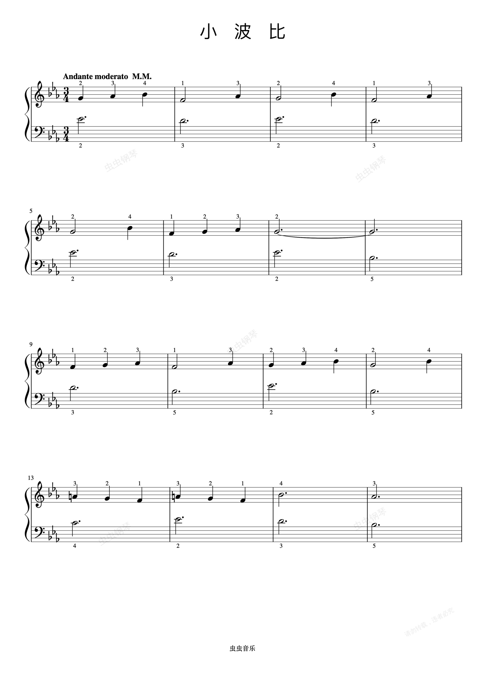 钢琴谱:小波比《约翰汤普森 现代钢琴教程1》