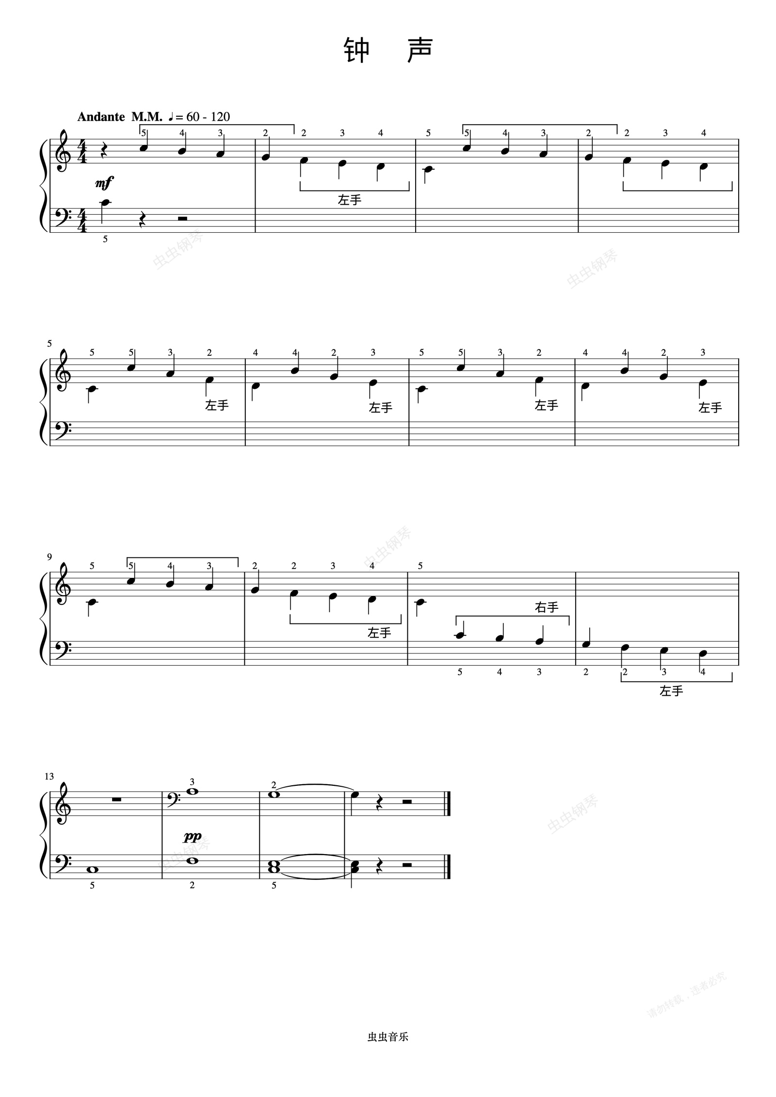 钢琴谱:钟声《约翰汤普森 现代钢琴教程1》