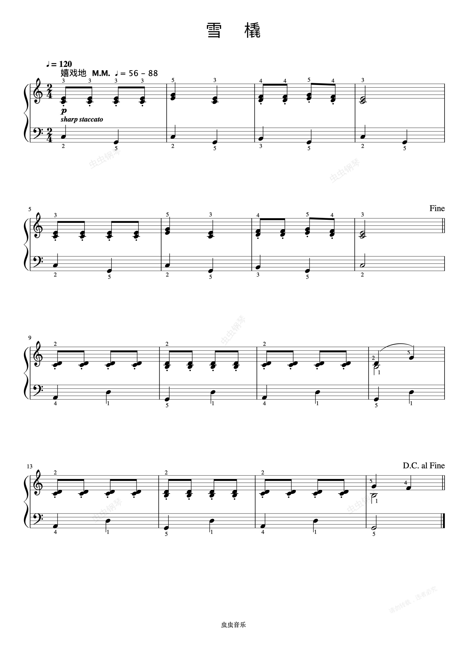 钢琴谱:雪橇《约翰汤普森 现代钢琴教程1》