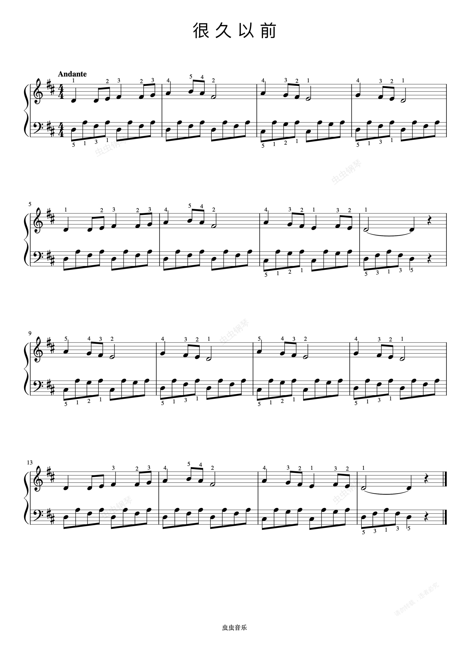 钢琴谱:很久以前《约翰汤普森 现代钢琴教程1》