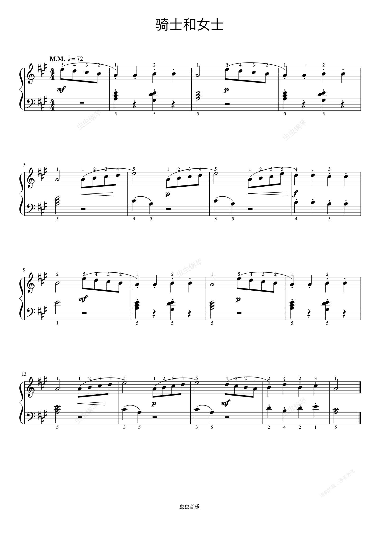钢琴谱:骑士和女士《约翰汤普森 现代钢琴教程1》