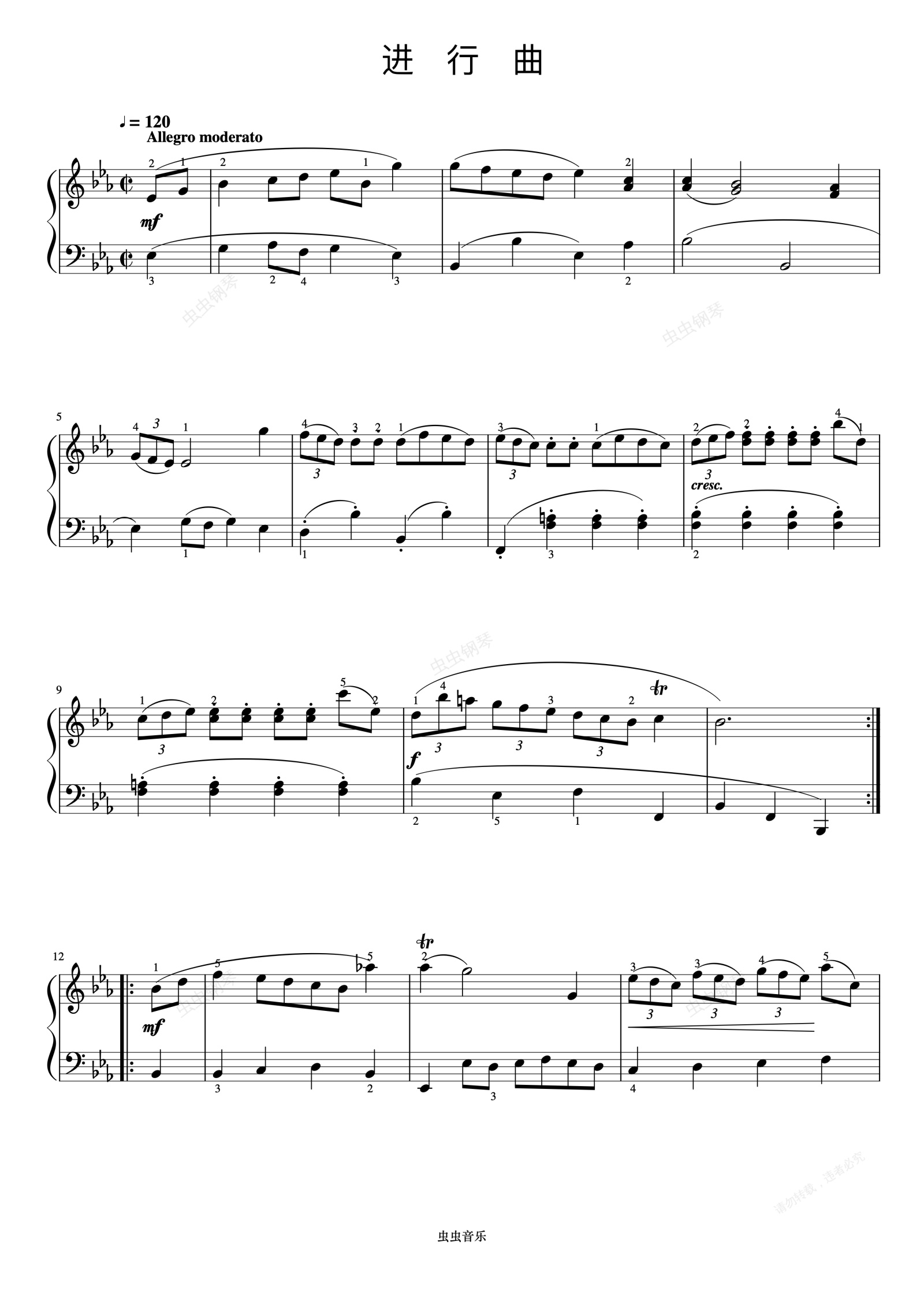 钢琴谱:第16首 进行曲《巴赫 初级钢琴曲集》
