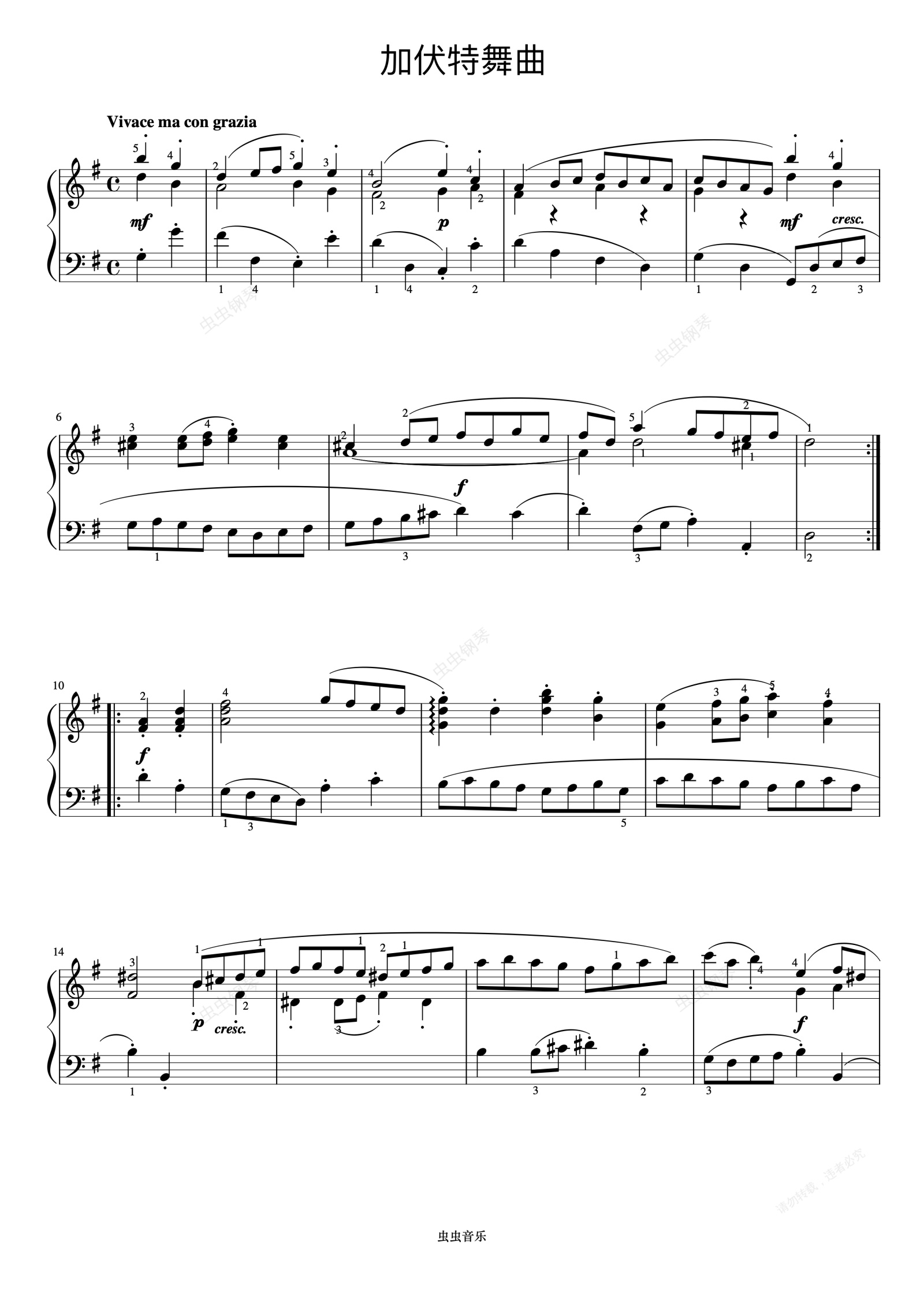 钢琴谱:第23首 加伏特舞曲《巴赫 初级钢琴曲集》