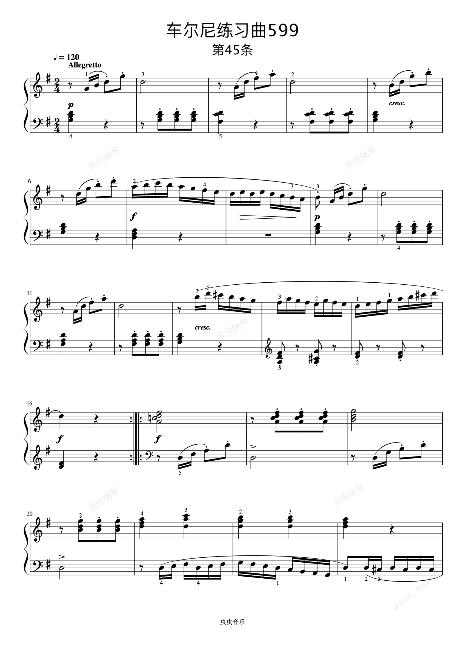 钢琴谱:第45首《车尔尼钢琴初步教程 作品599》