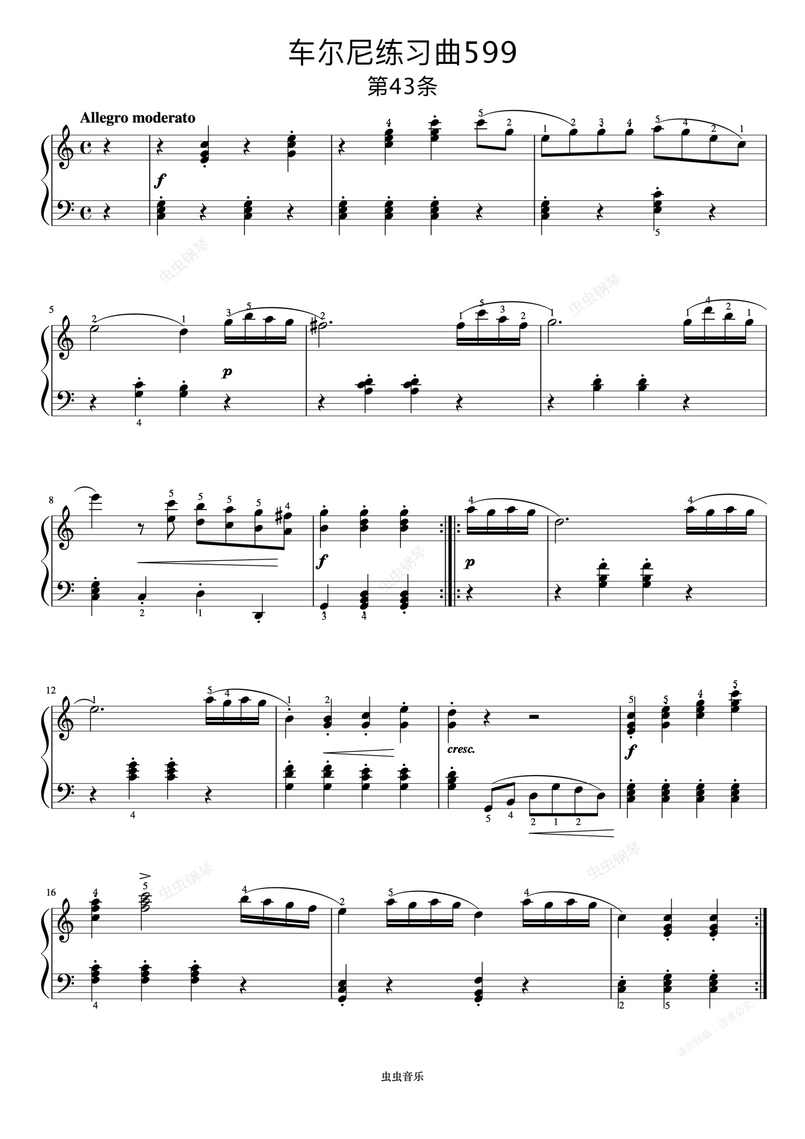 钢琴谱:第43首《车尔尼钢琴初步教程 作品599》