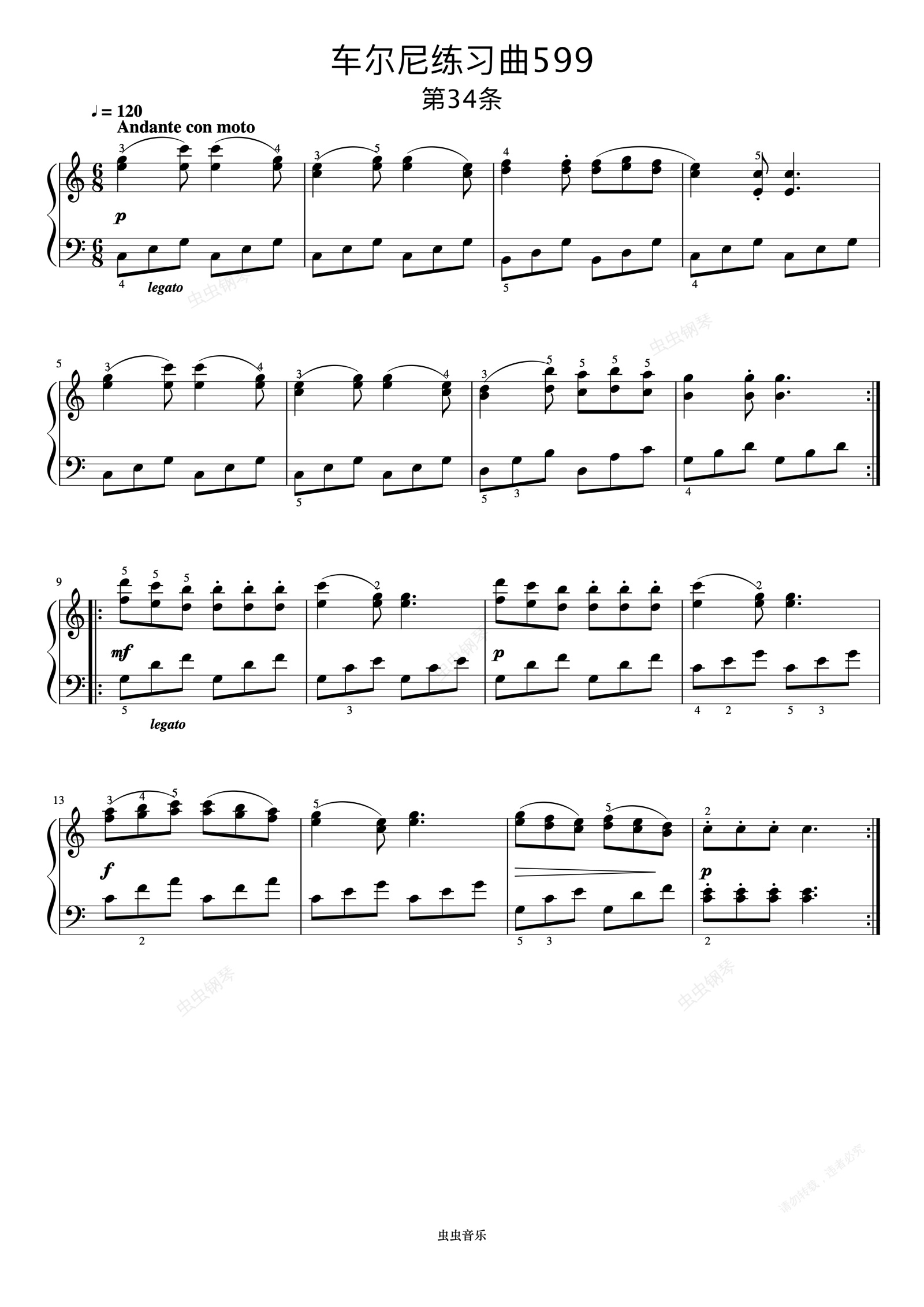 钢琴谱:第34首《车尔尼钢琴初步教程 作品599》