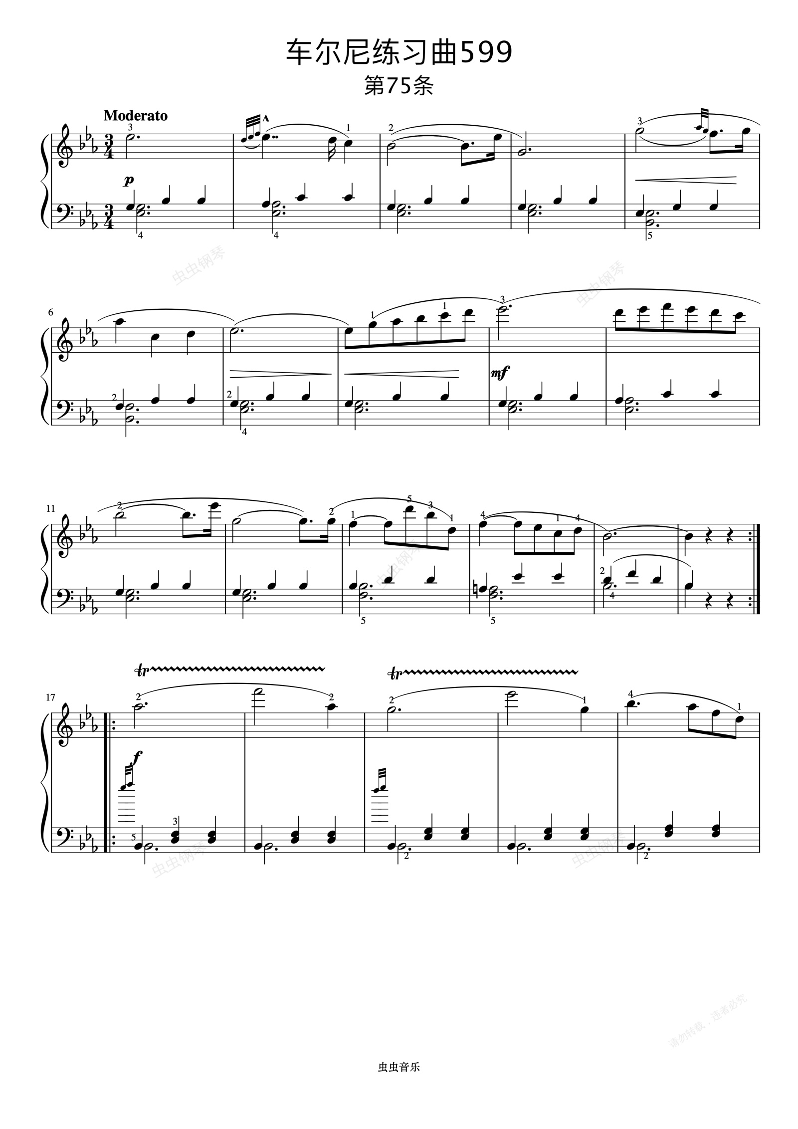 钢琴谱:第75首《车尔尼钢琴初步教程 作品599》