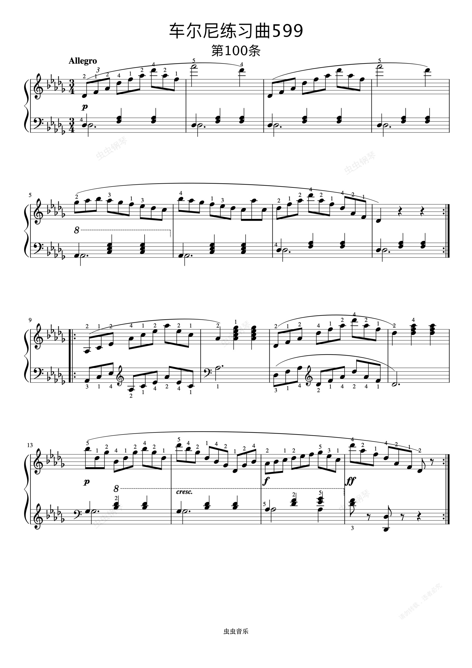 钢琴谱:第100首《车尔尼钢琴初步教程 作品599》