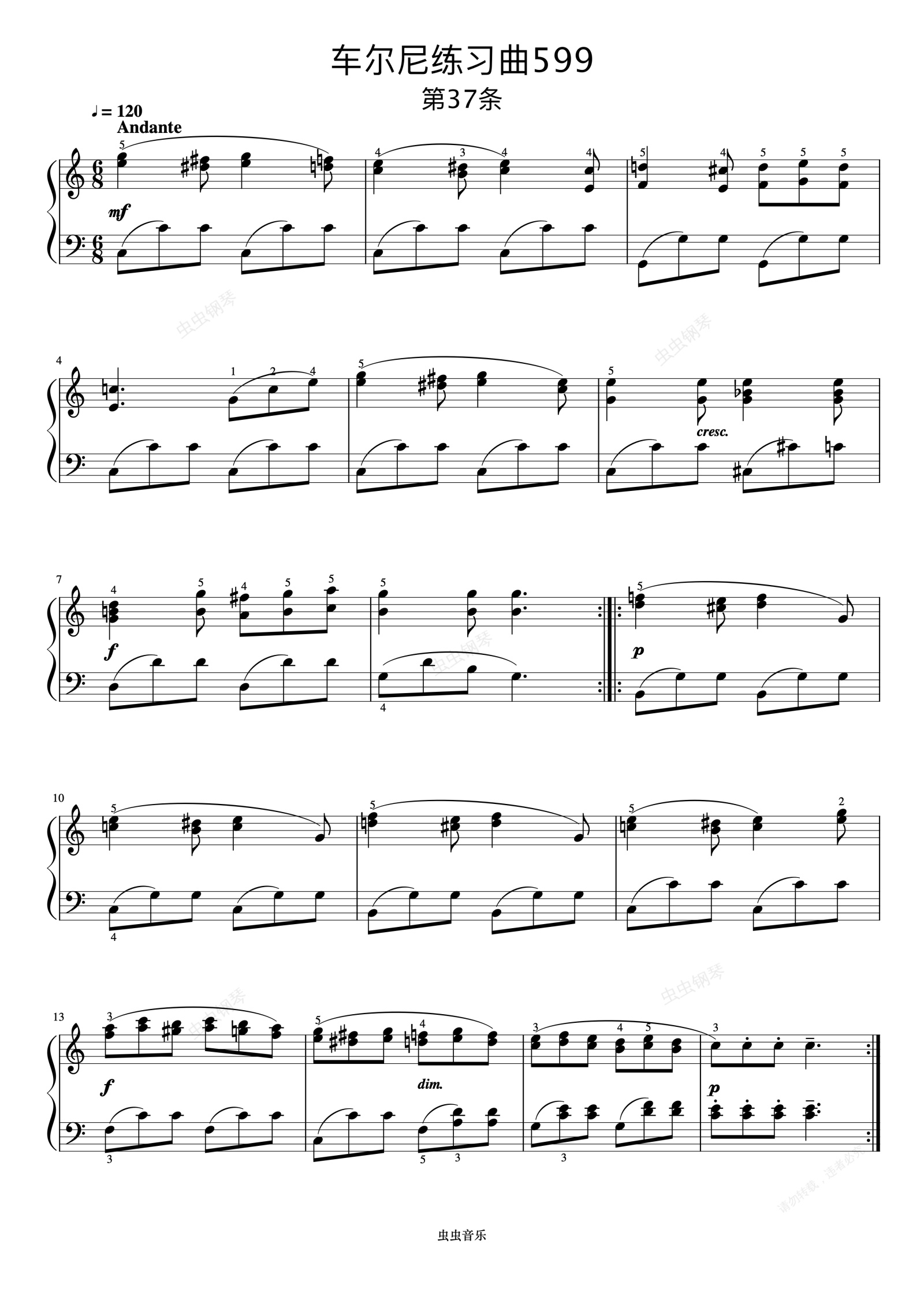 钢琴谱:第37首《车尔尼钢琴初步教程 作品599》