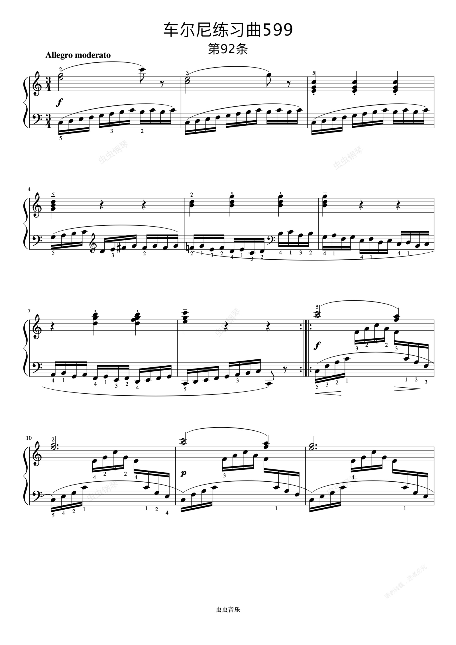 钢琴谱:第92首《车尔尼钢琴初步教程 作品599》