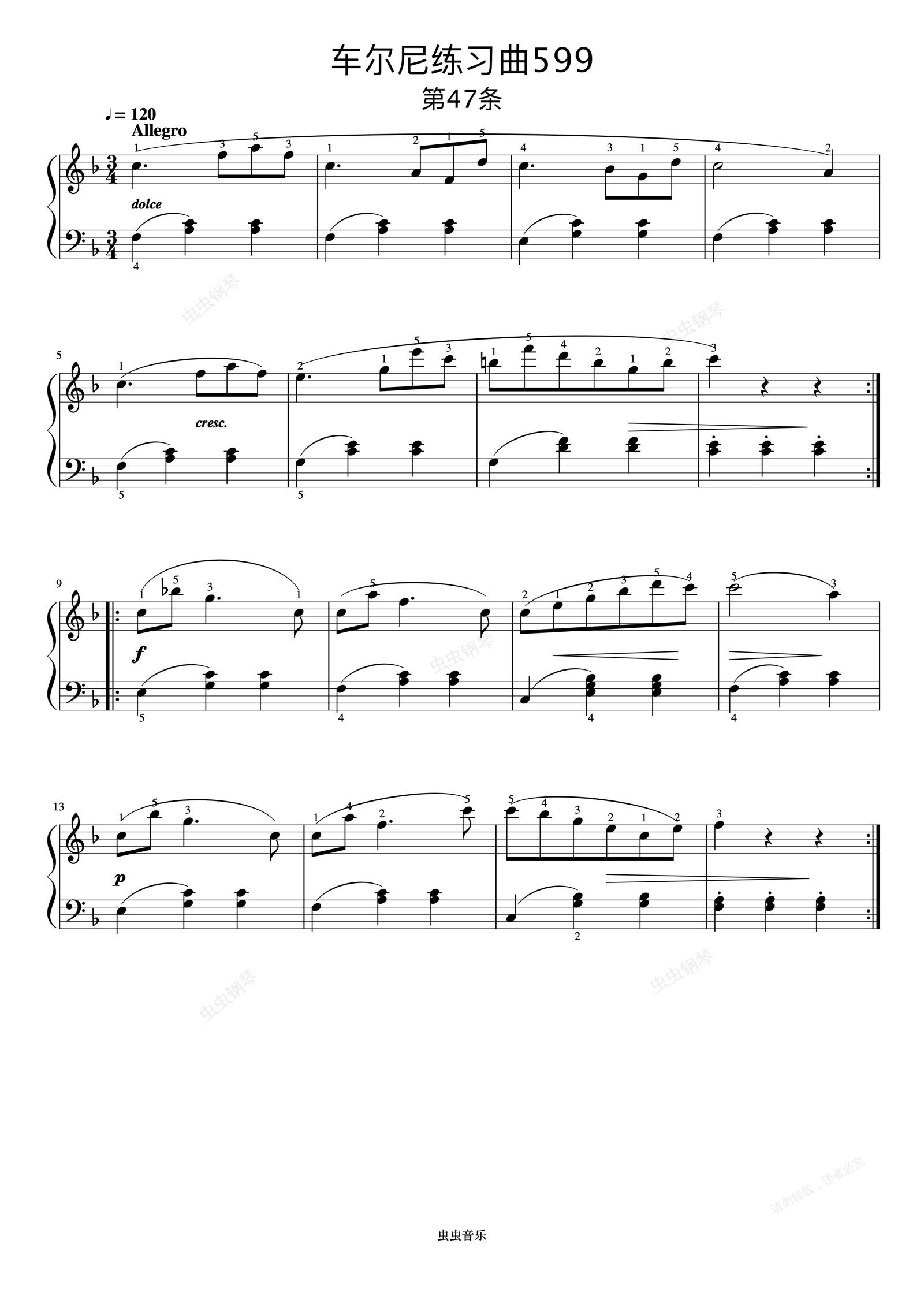钢琴谱:第47首《车尔尼钢琴初步教程 作品599》