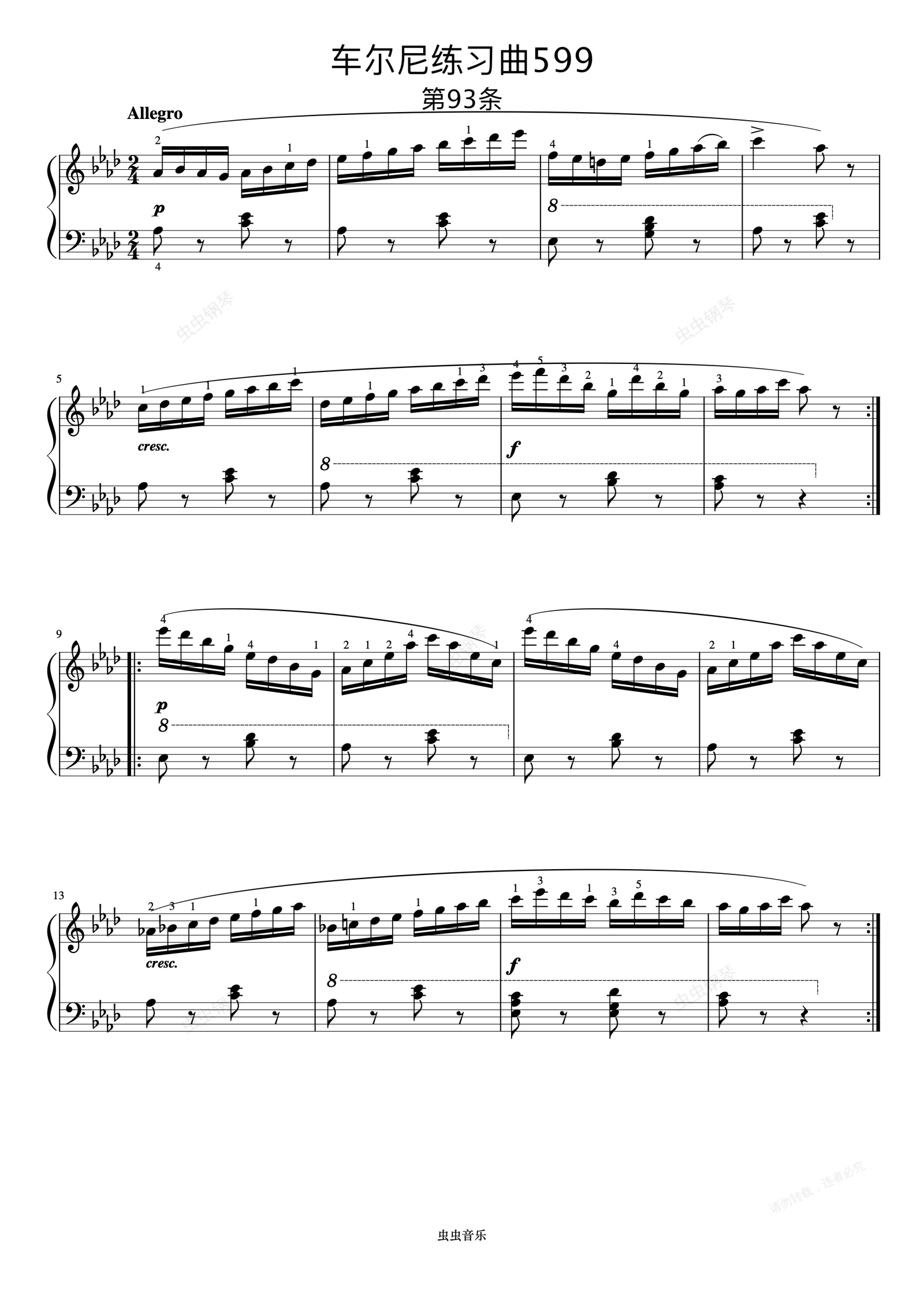 钢琴谱:第93首《车尔尼钢琴初步教程 作品599》