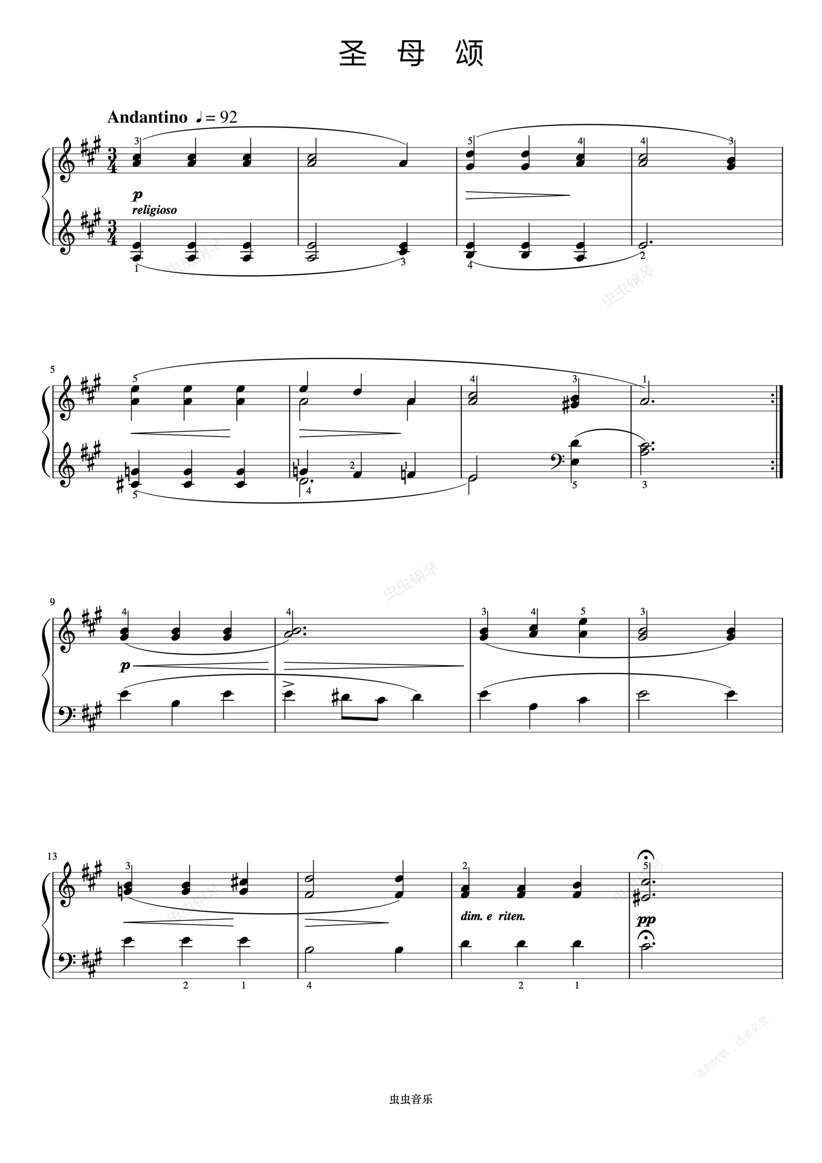 钢琴谱:圣母颂《布格缪勒 作品100》