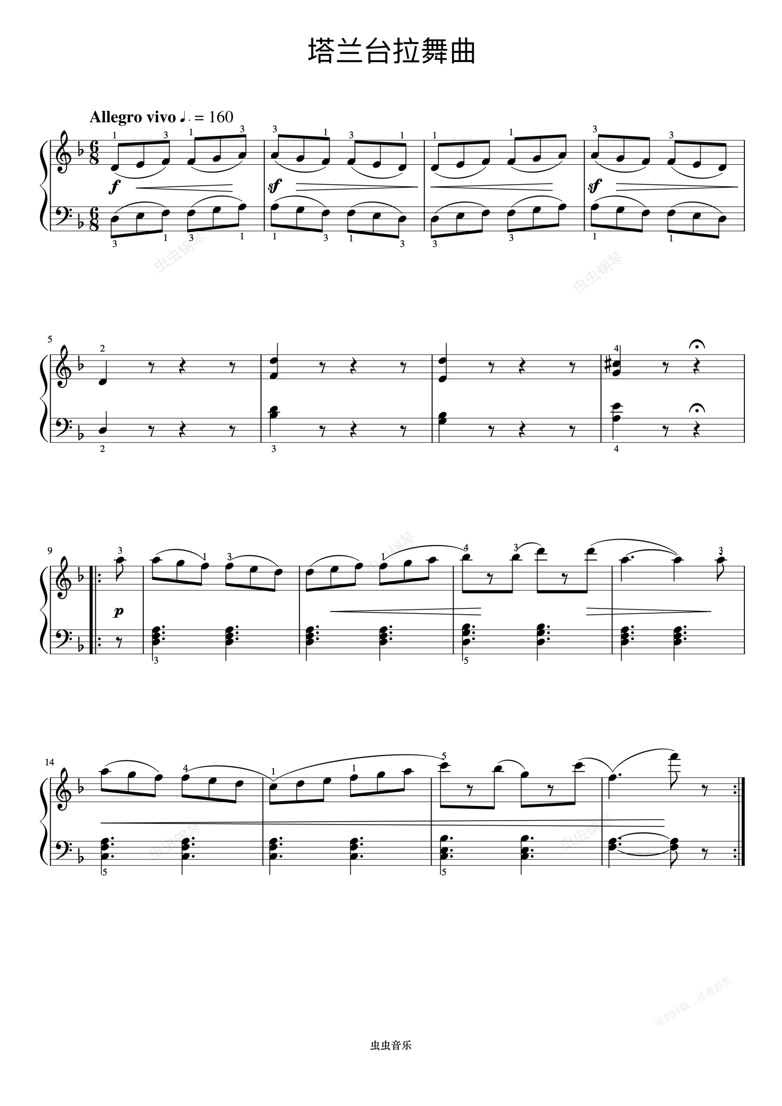 钢琴谱:塔兰台拉舞曲《布格缪勒 作品100》