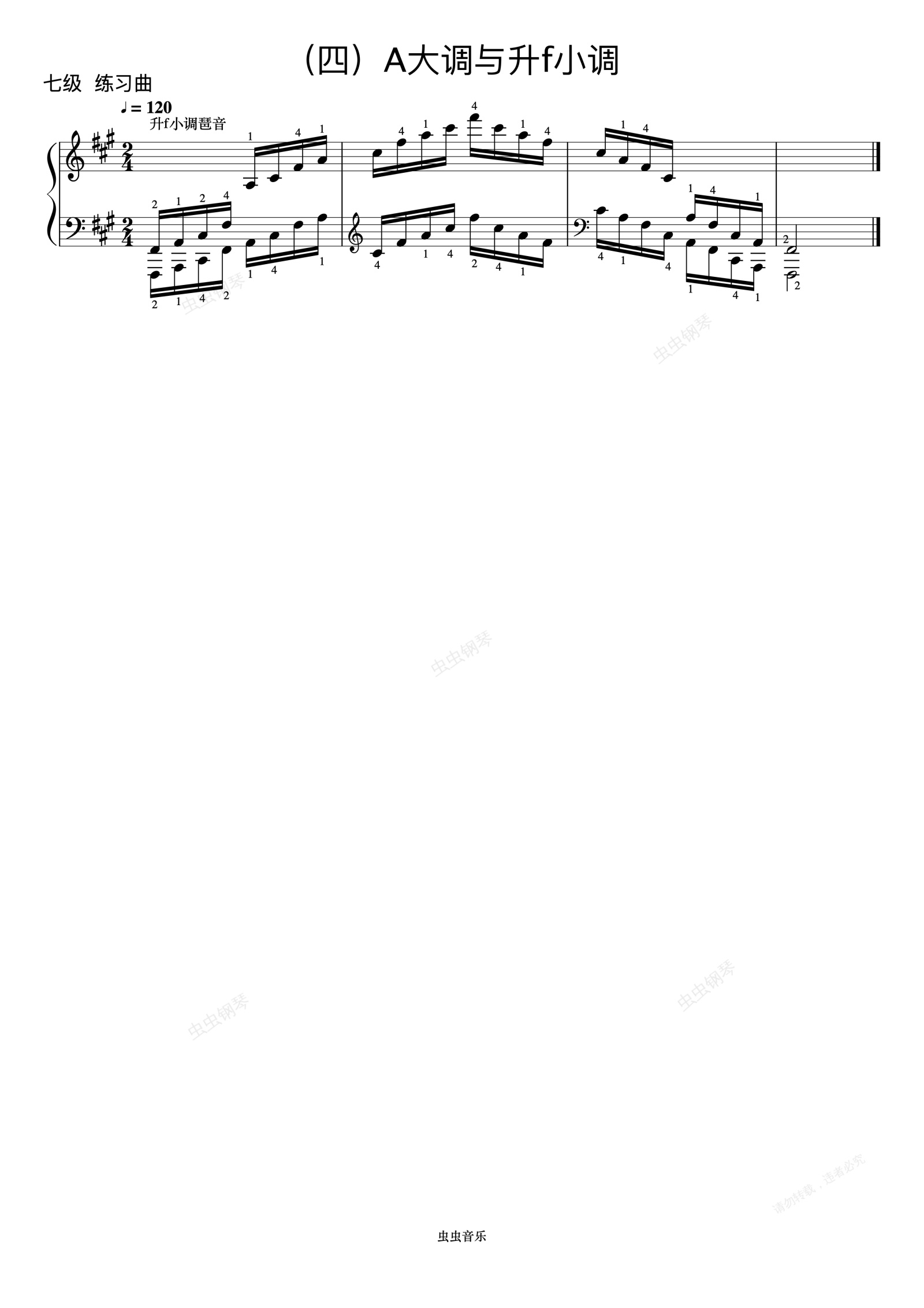 钢琴谱:7级 升f小调琶音《音协钢琴考级曲目 6-8级》