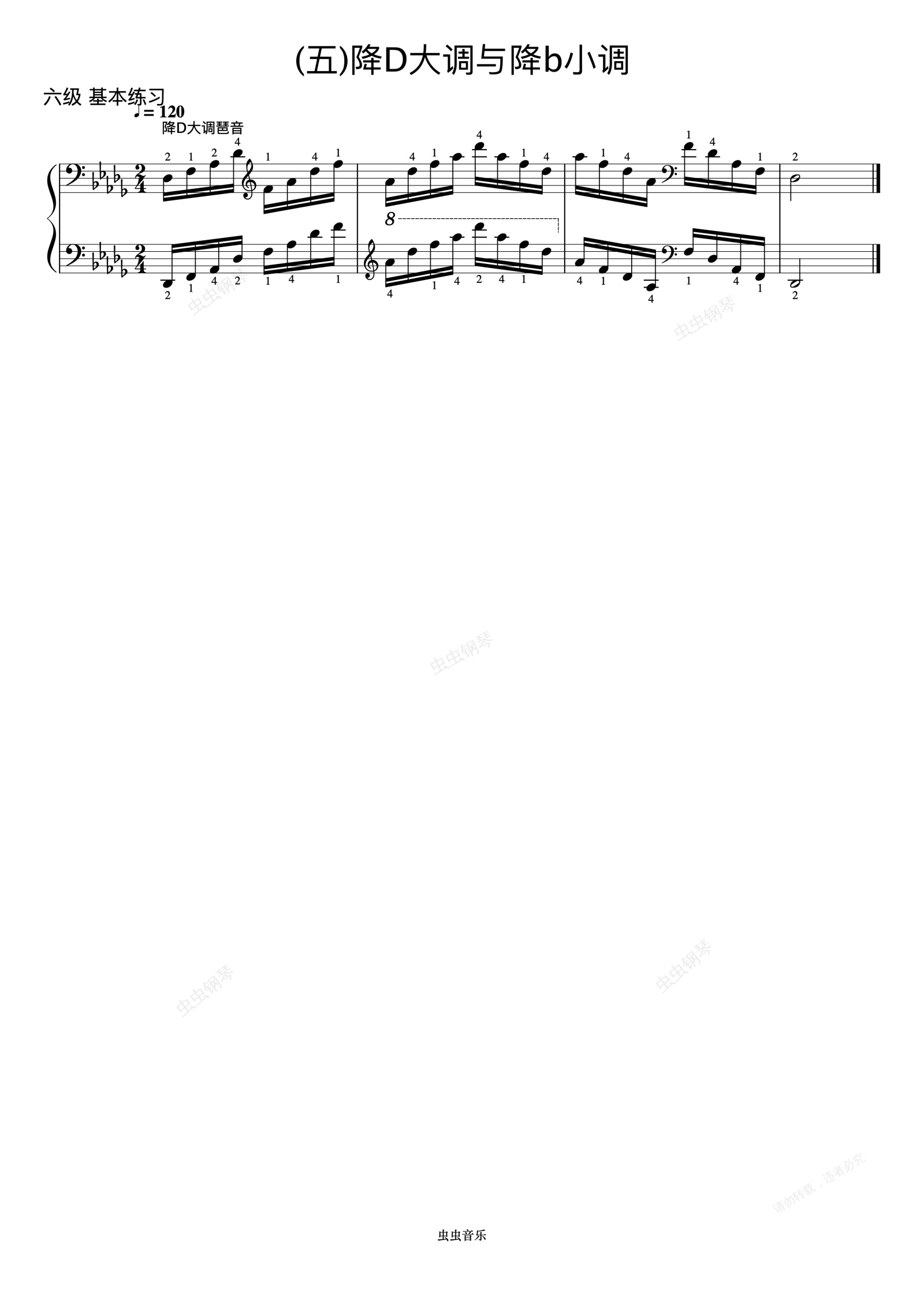 钢琴谱:6级 降D大调琶音《音协钢琴考级曲目 6-8级》