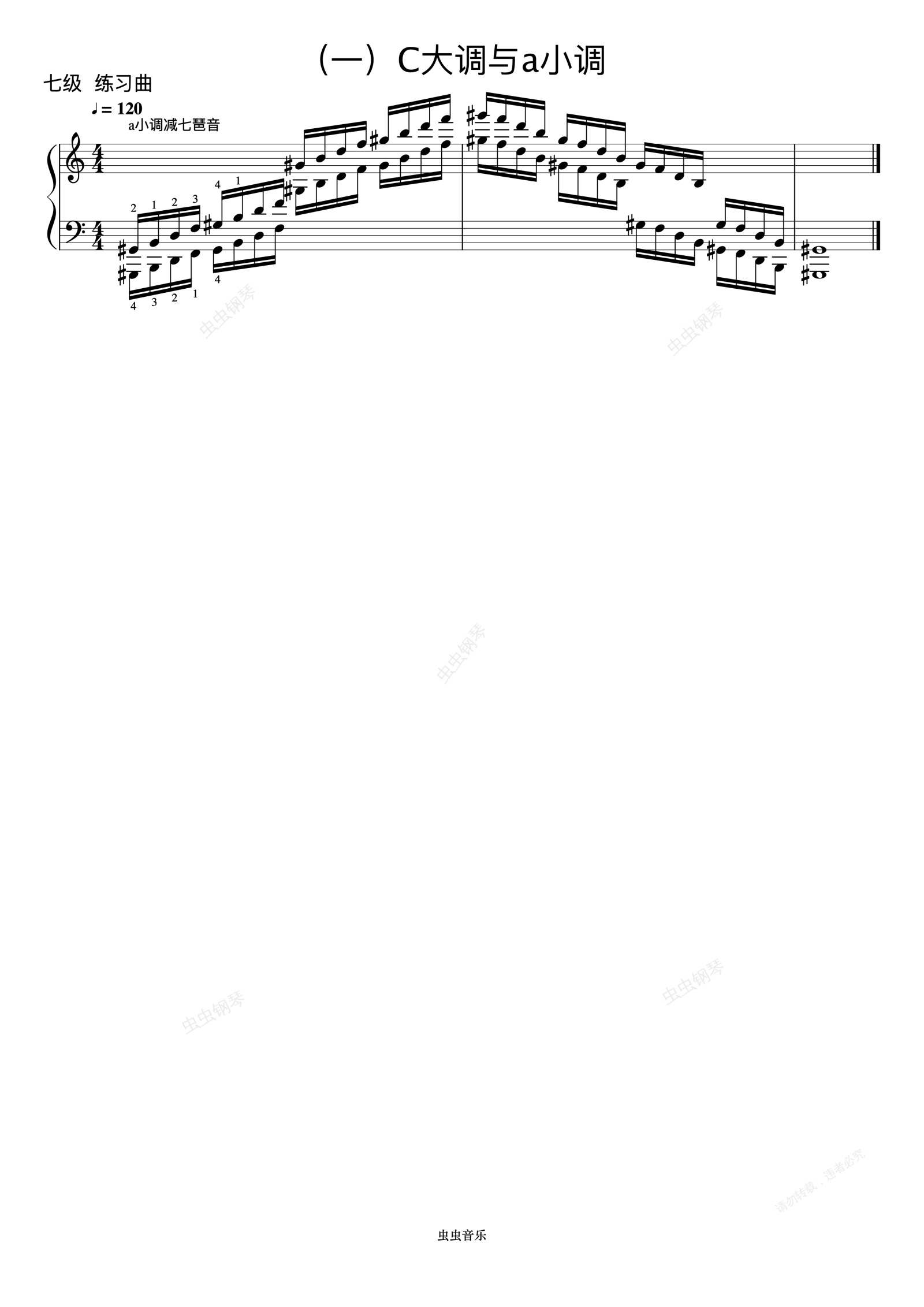 钢琴谱:7级 a小调减七琶音《音协钢琴考级曲目 6-8级》