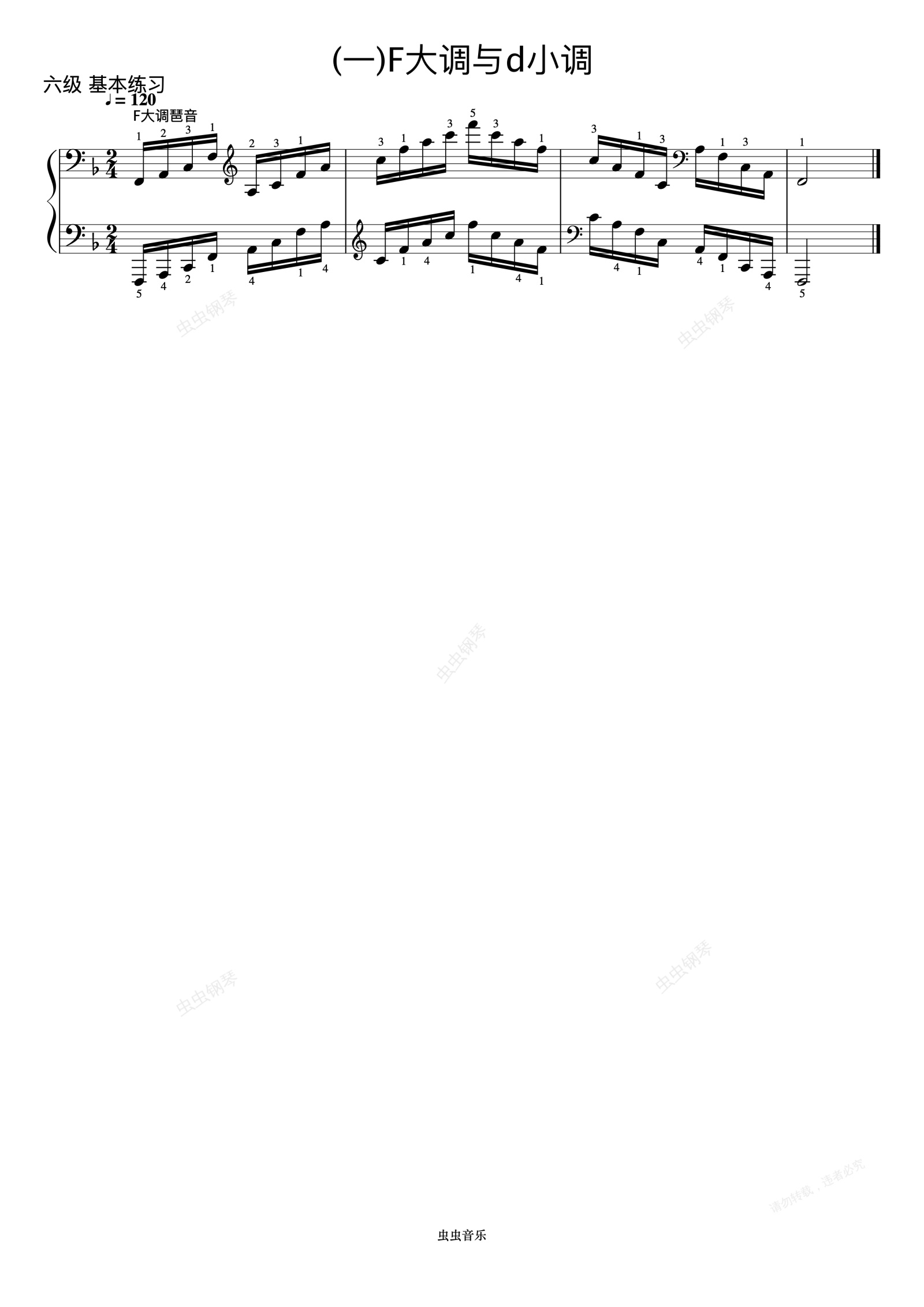 钢琴谱:6级 F大调琶音《音协钢琴考级曲目 6-8级》