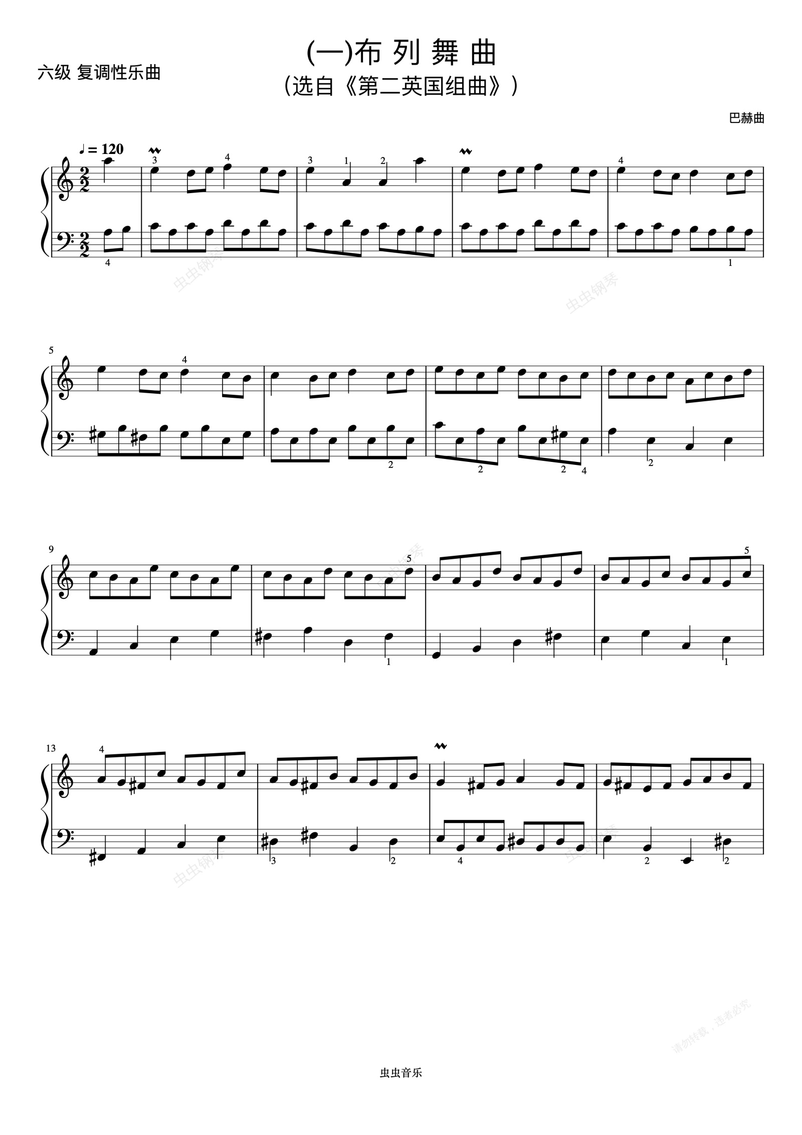 钢琴谱:6级 布列舞曲《音协钢琴考级曲目 6-8级》
