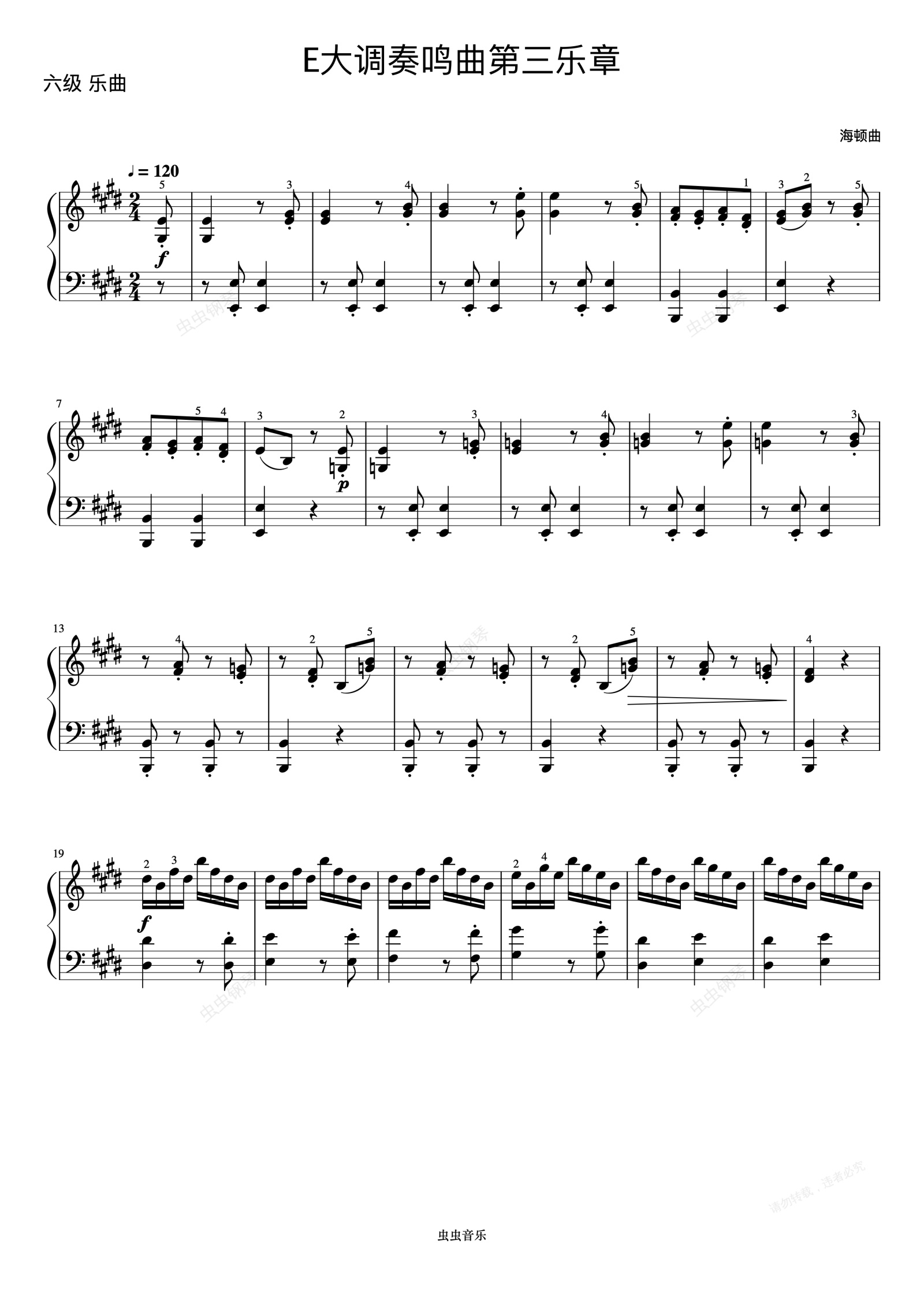 钢琴谱:6级 E大调奏鸣曲第三乐章《音协钢琴考级曲目 6-8级》