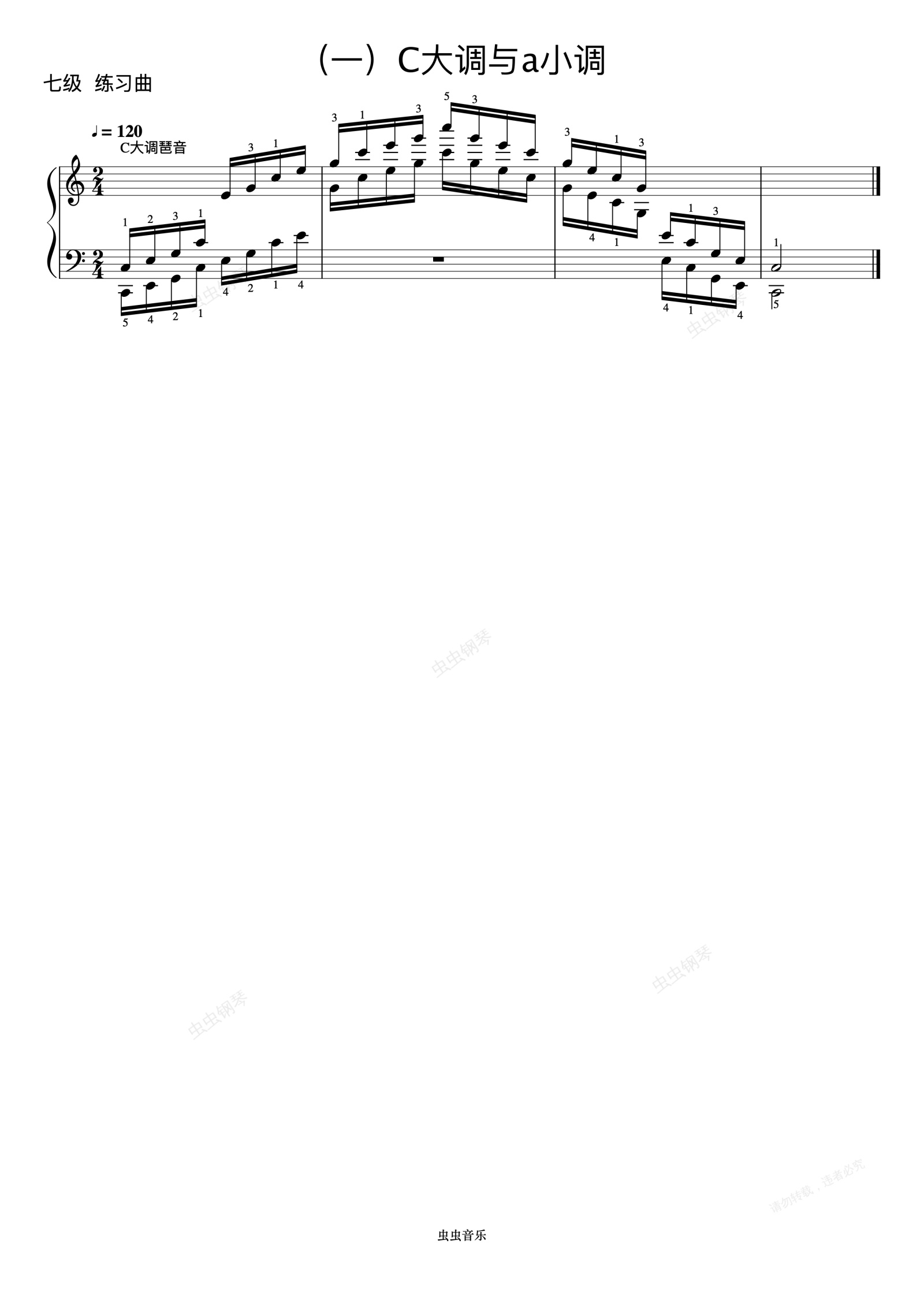 钢琴谱:7级 C大调琶音《音协钢琴考级曲目 6-8级》