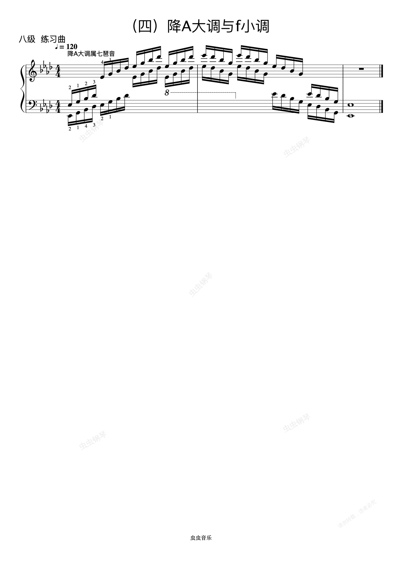 钢琴谱:8级 降A大调属七琶音《音协钢琴考级曲目 6-8级》