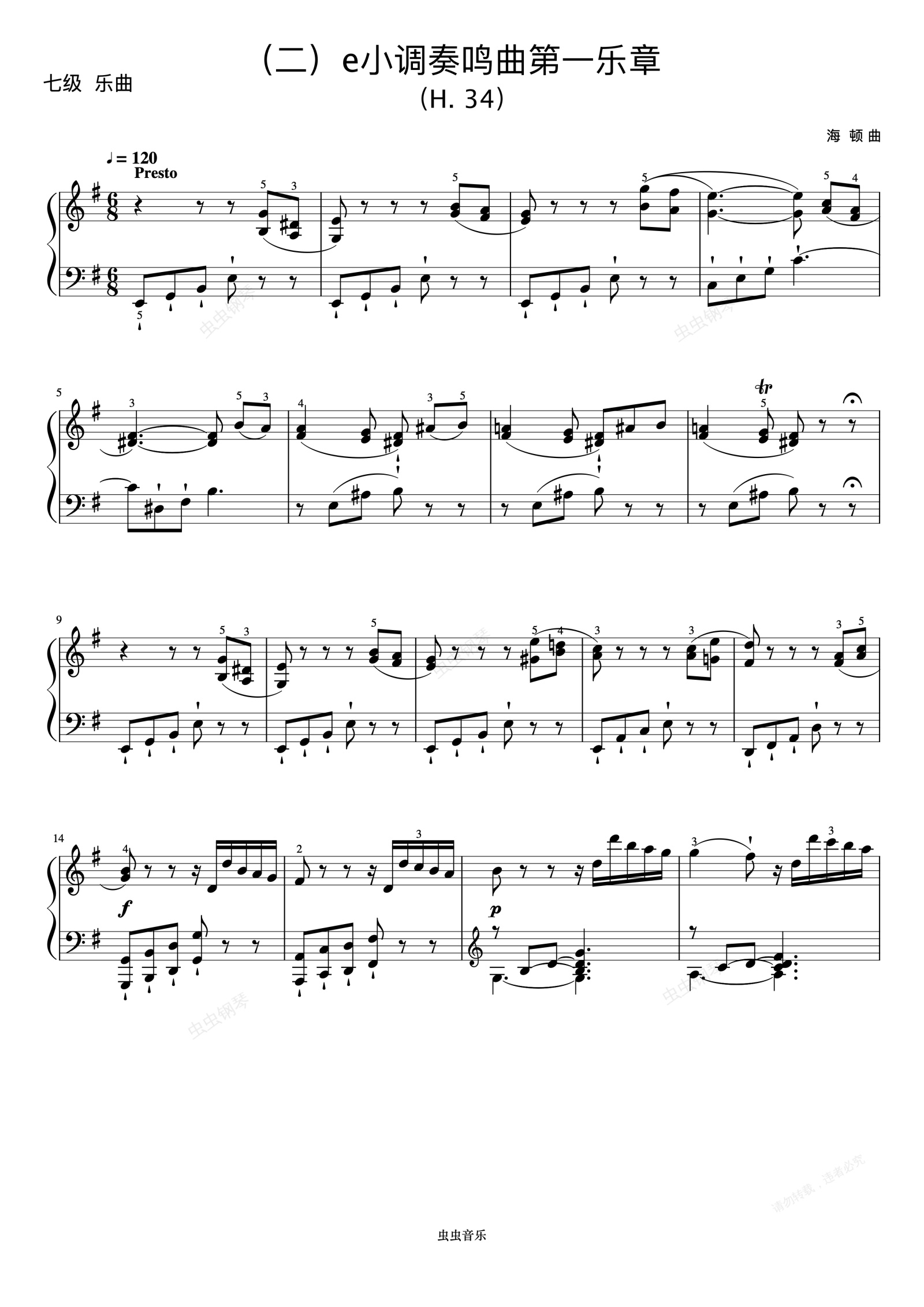 钢琴谱:7级 e小调奏鸣曲第一乐章《音协钢琴考级曲目 6-8级》