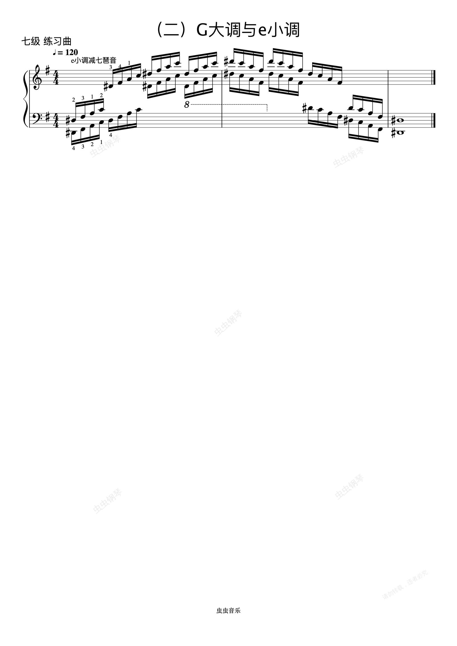 钢琴谱:7级 e小调减七琶音《音协钢琴考级曲目 6-8级》