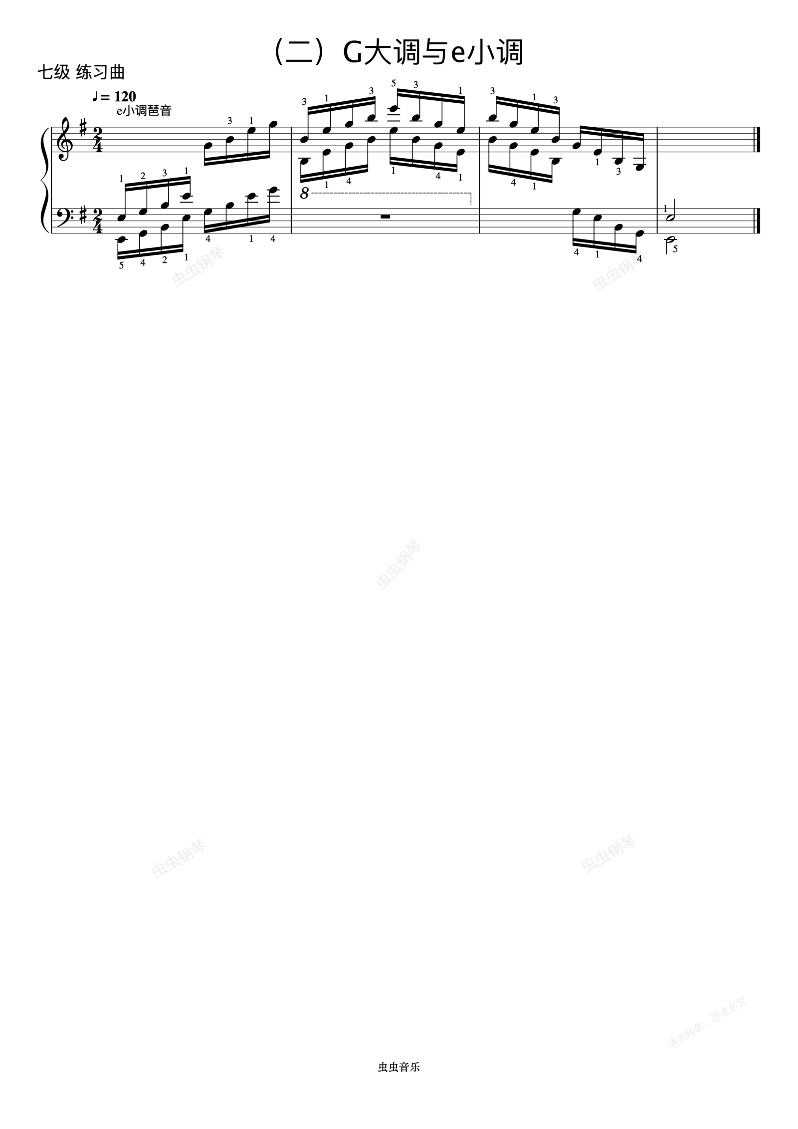 钢琴谱:7级 e小调琶音《音协钢琴考级曲目 6-8级》