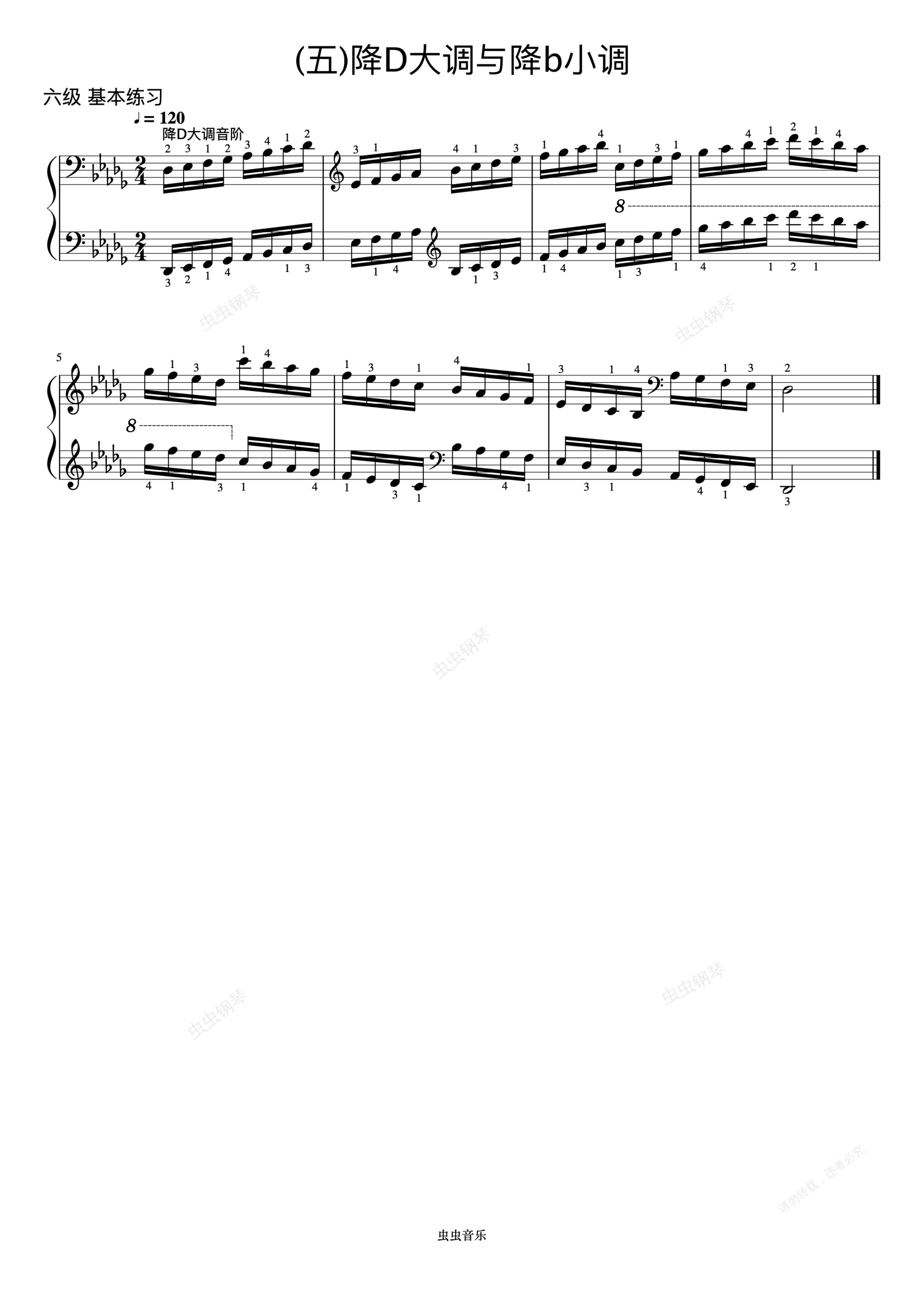钢琴谱:6级 降D大调音阶《音协钢琴考级曲目 6-8级》