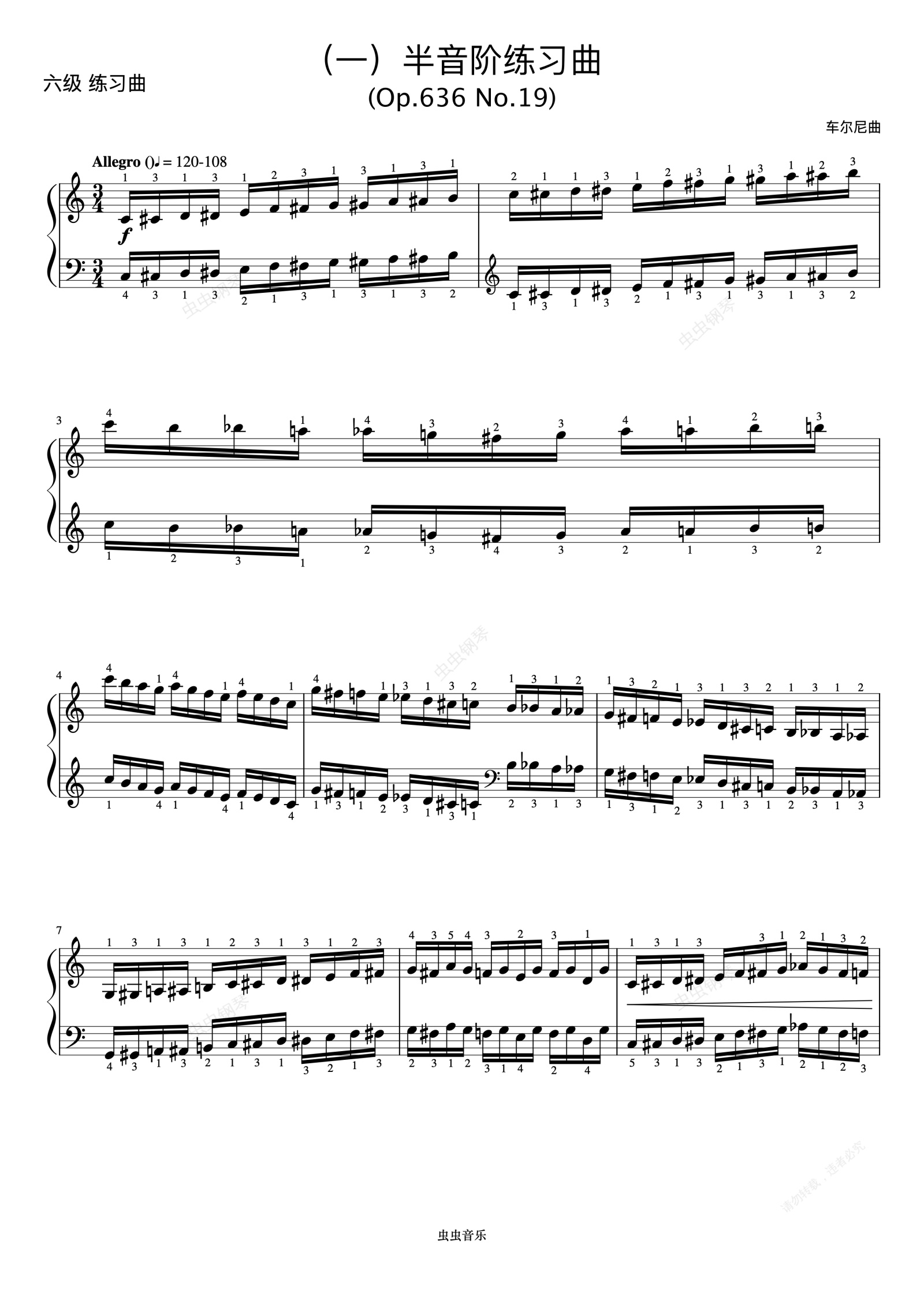 钢琴谱:6级 半音阶练习曲Op.636 No.19《音协钢琴考级曲目 6-8级》