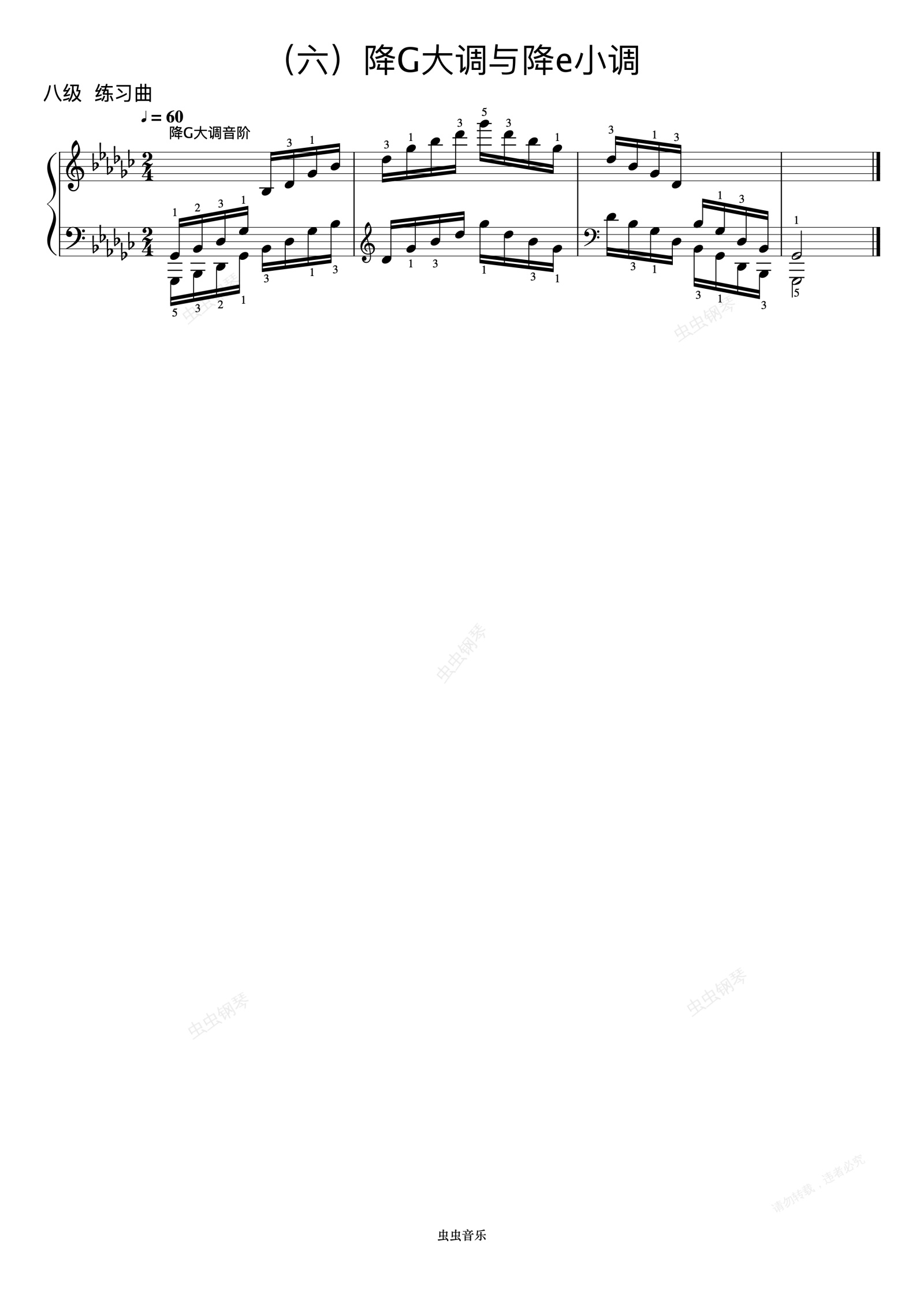 钢琴谱:8级 降G大调琶音《音协钢琴考级曲目 6-8级》