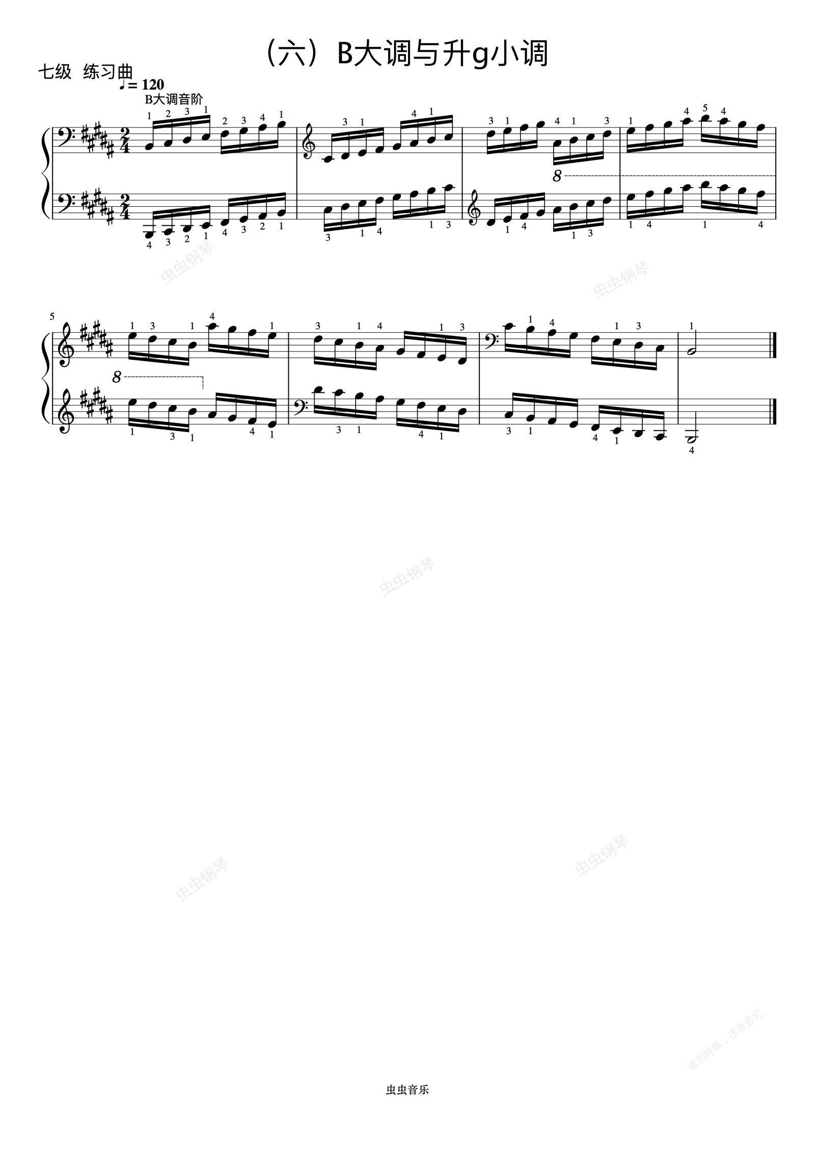 钢琴谱:7级 B大调音阶《音协钢琴考级曲目 6-8级》