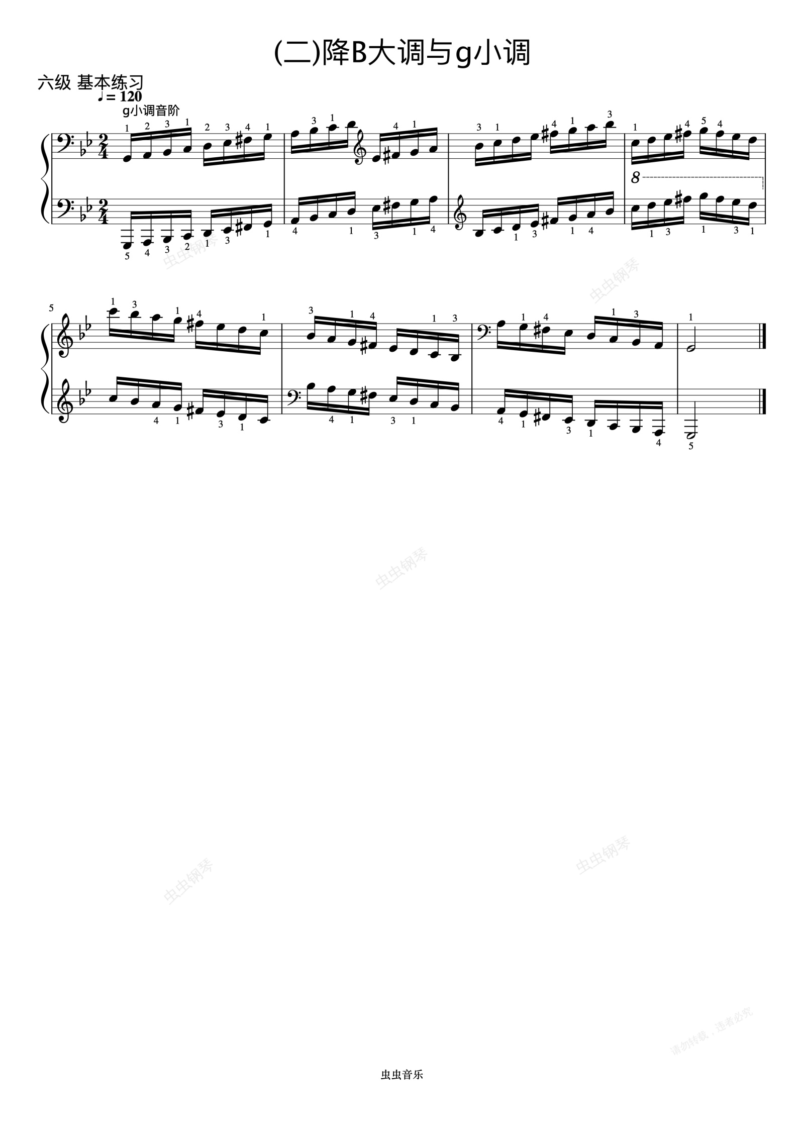 钢琴谱:6级 g小调音阶《音协钢琴考级曲目 6-8级》