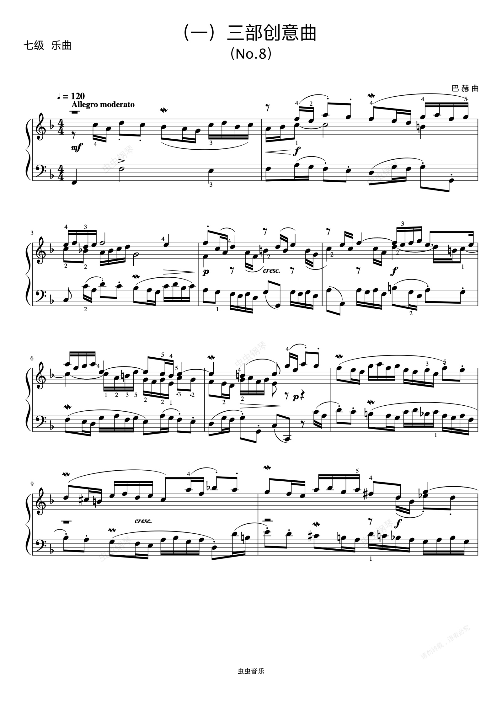 钢琴谱:7级 三部创意曲(No.8)《音协钢琴考级曲目 6-8级》