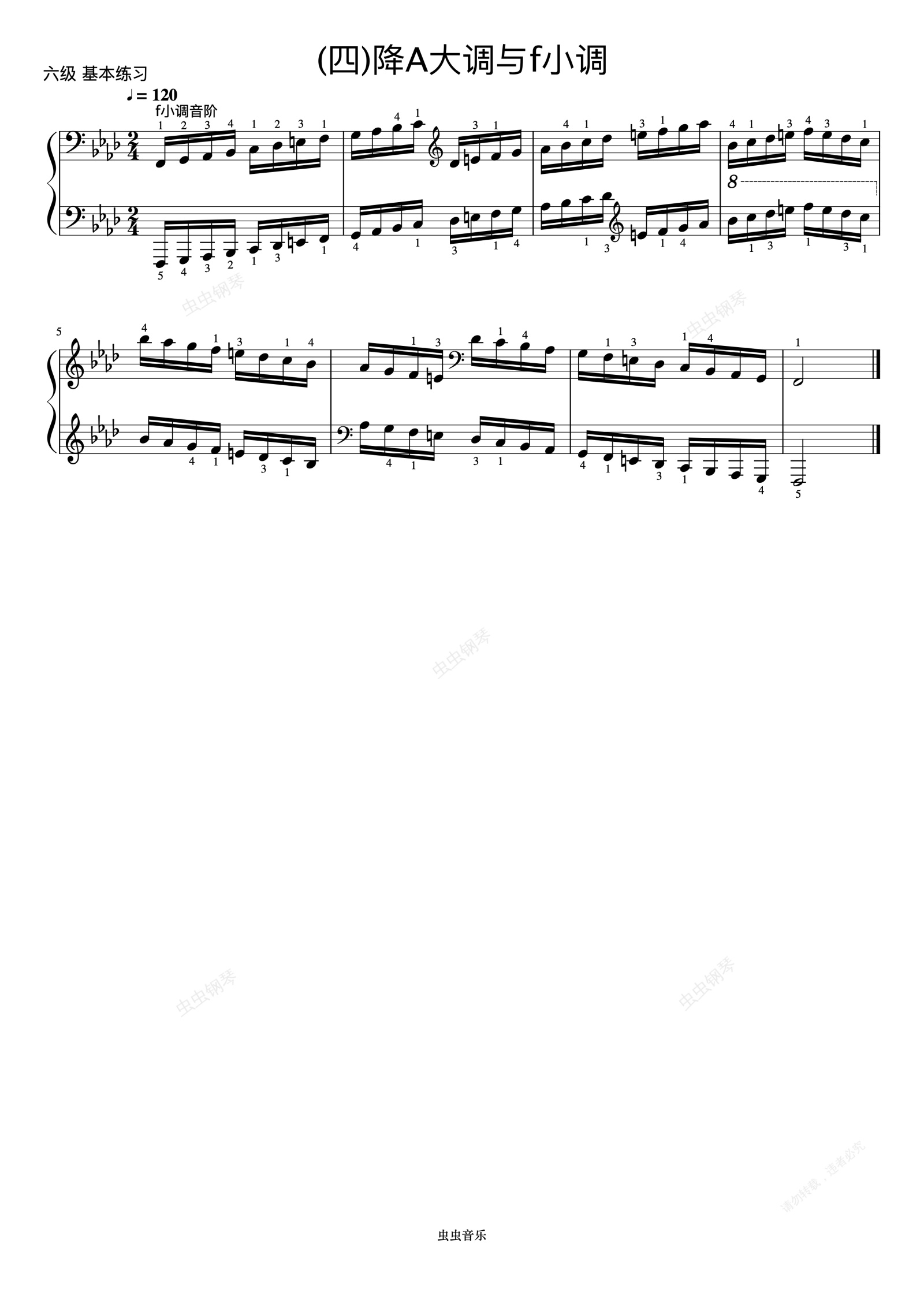 钢琴谱:6级 f小调音阶《音协钢琴考级曲目 6-8级》