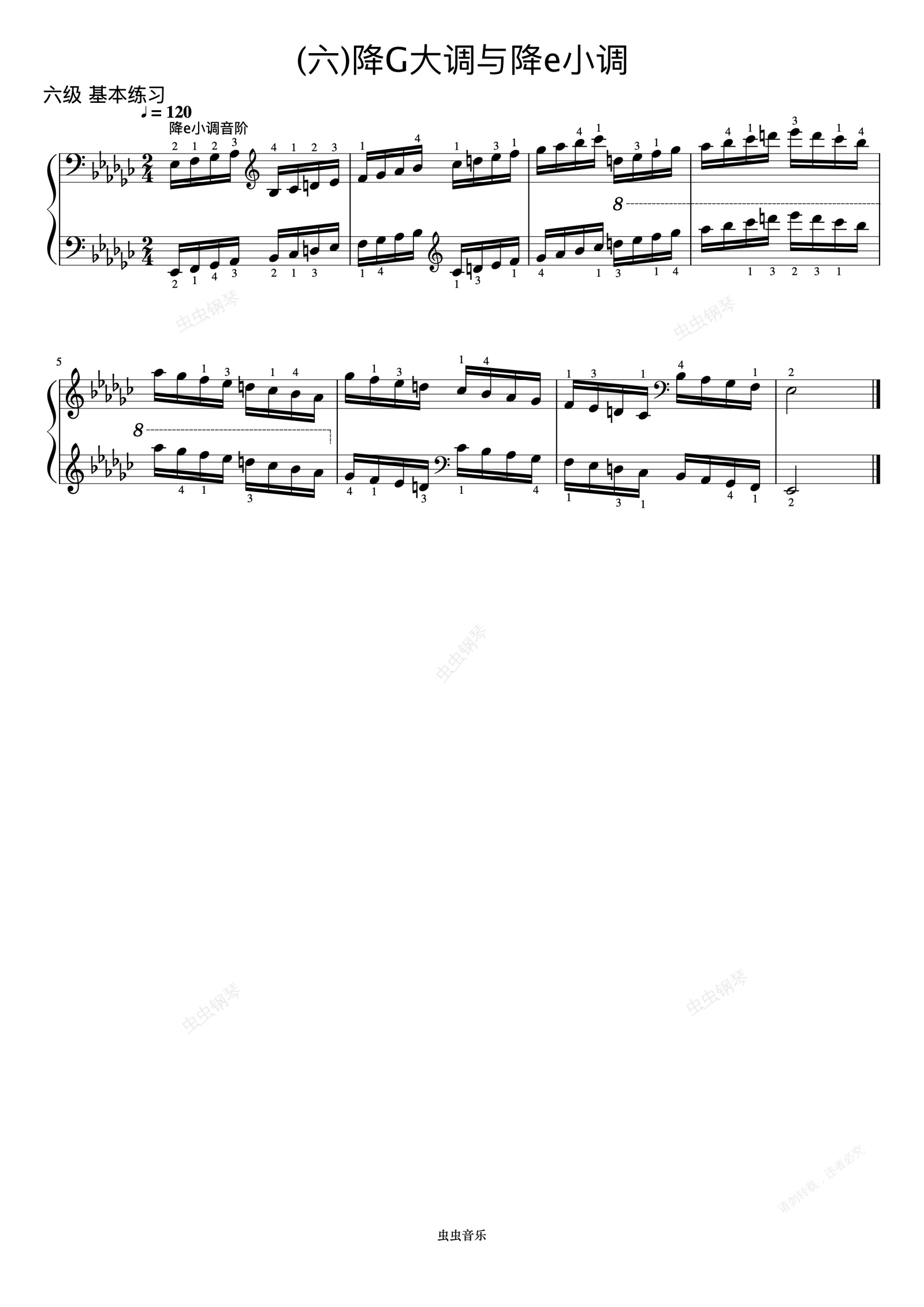 钢琴谱:6级 降e小调音阶《音协钢琴考级曲目 6-8级》