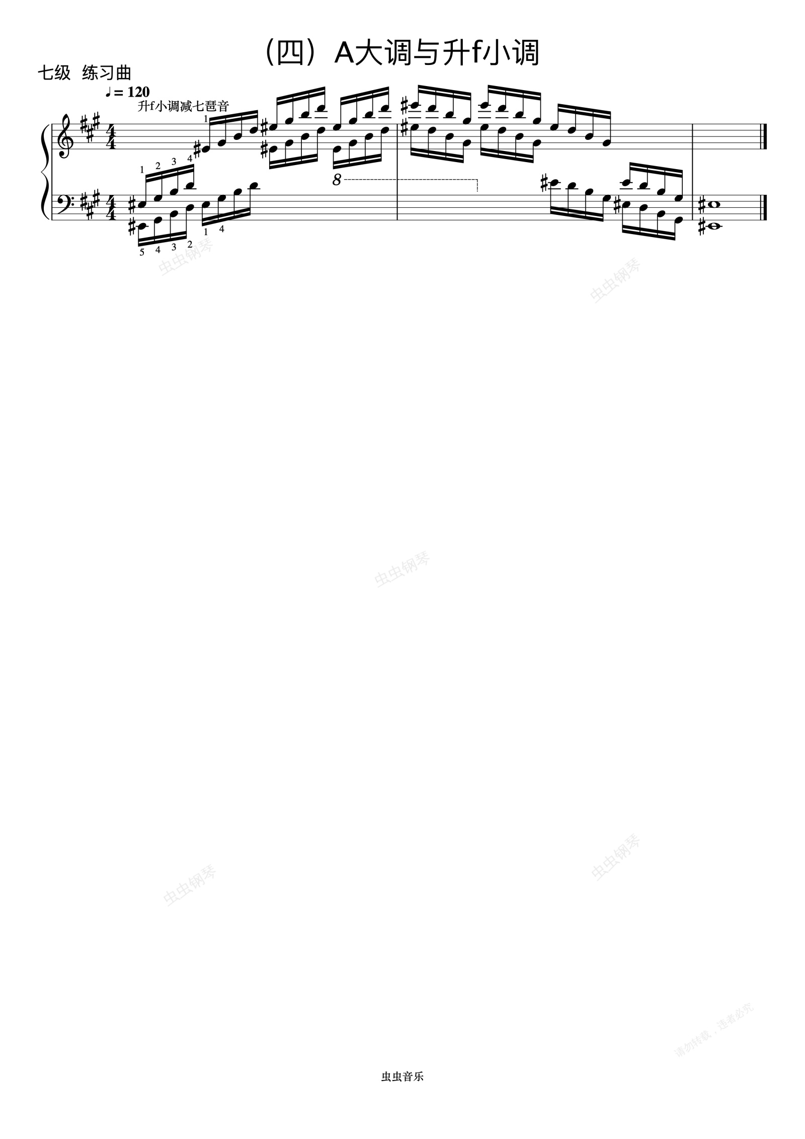 钢琴谱:7级 升f小调减七琶音《音协钢琴考级曲目 6-8级》
