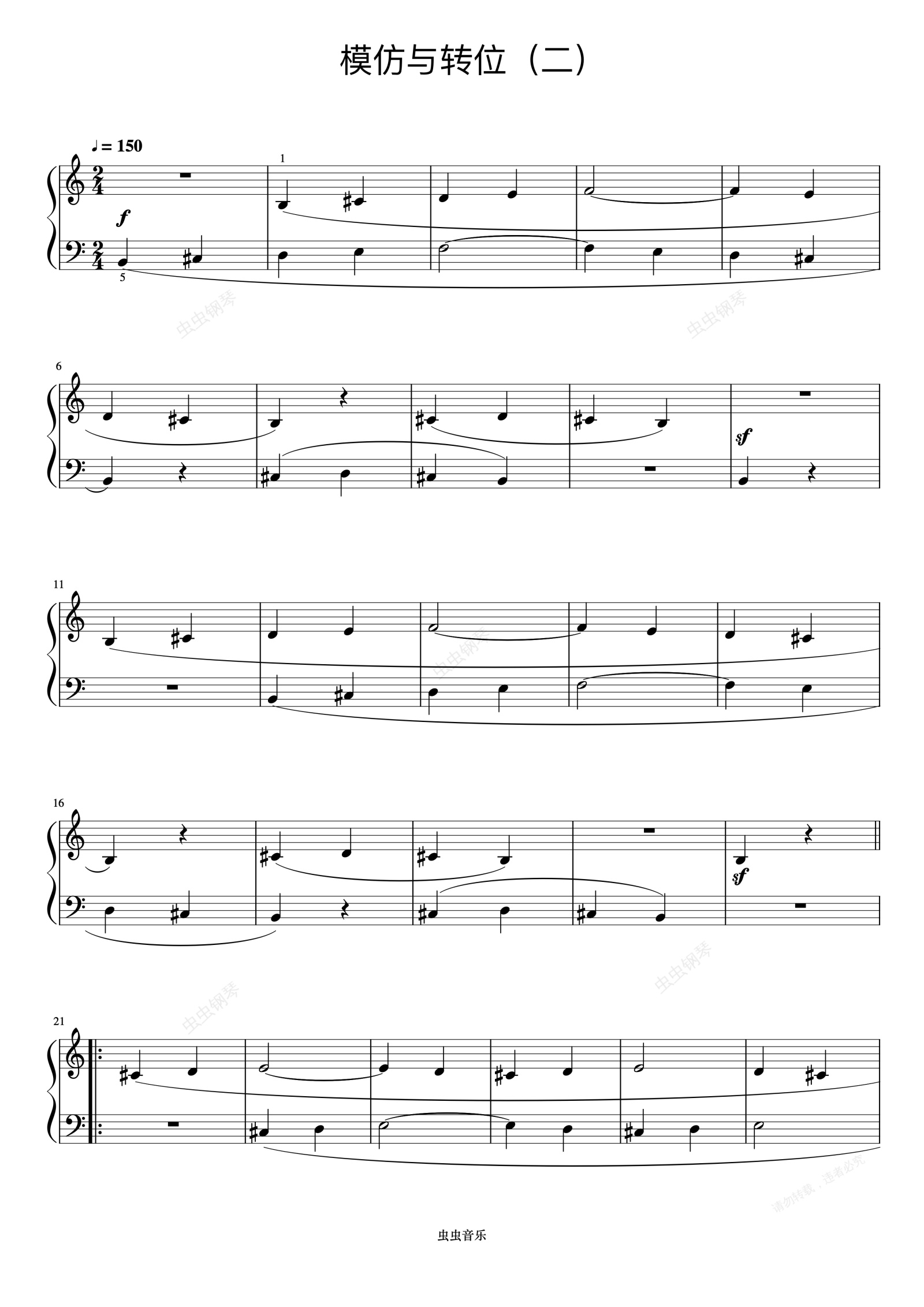 钢琴谱:模仿与转位(二)《巴托克小宇宙钢琴教程1》