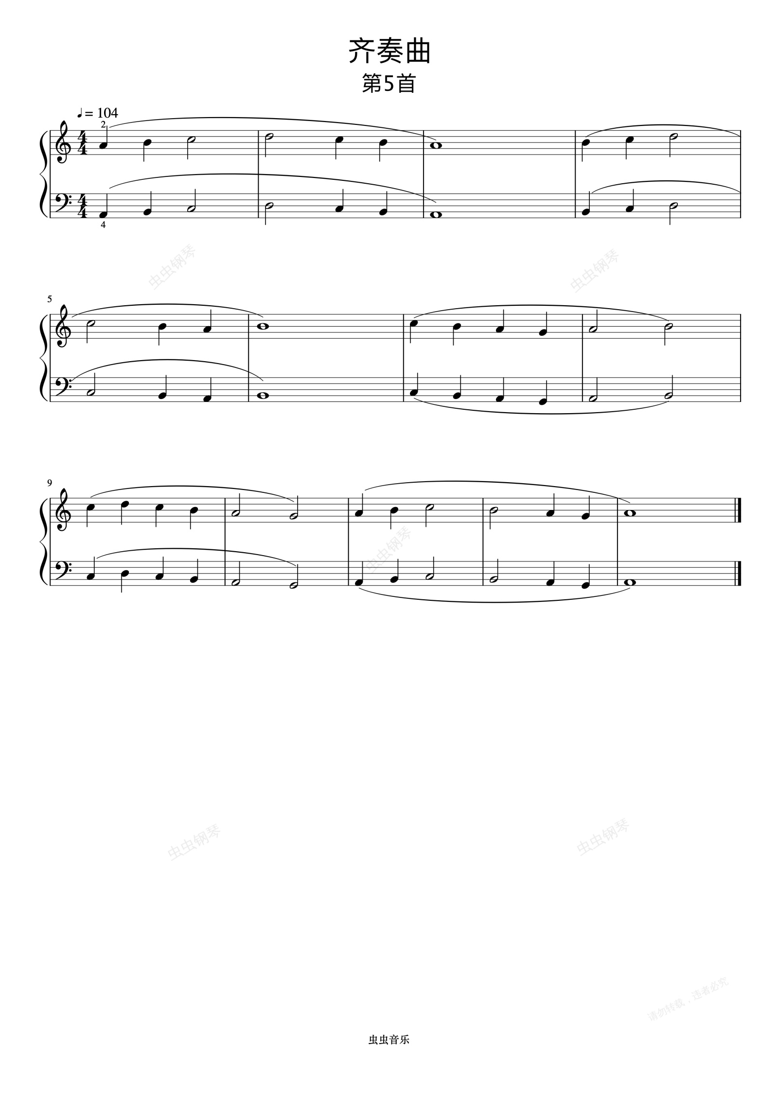 钢琴谱:齐奏曲5《巴托克小宇宙钢琴教程1》