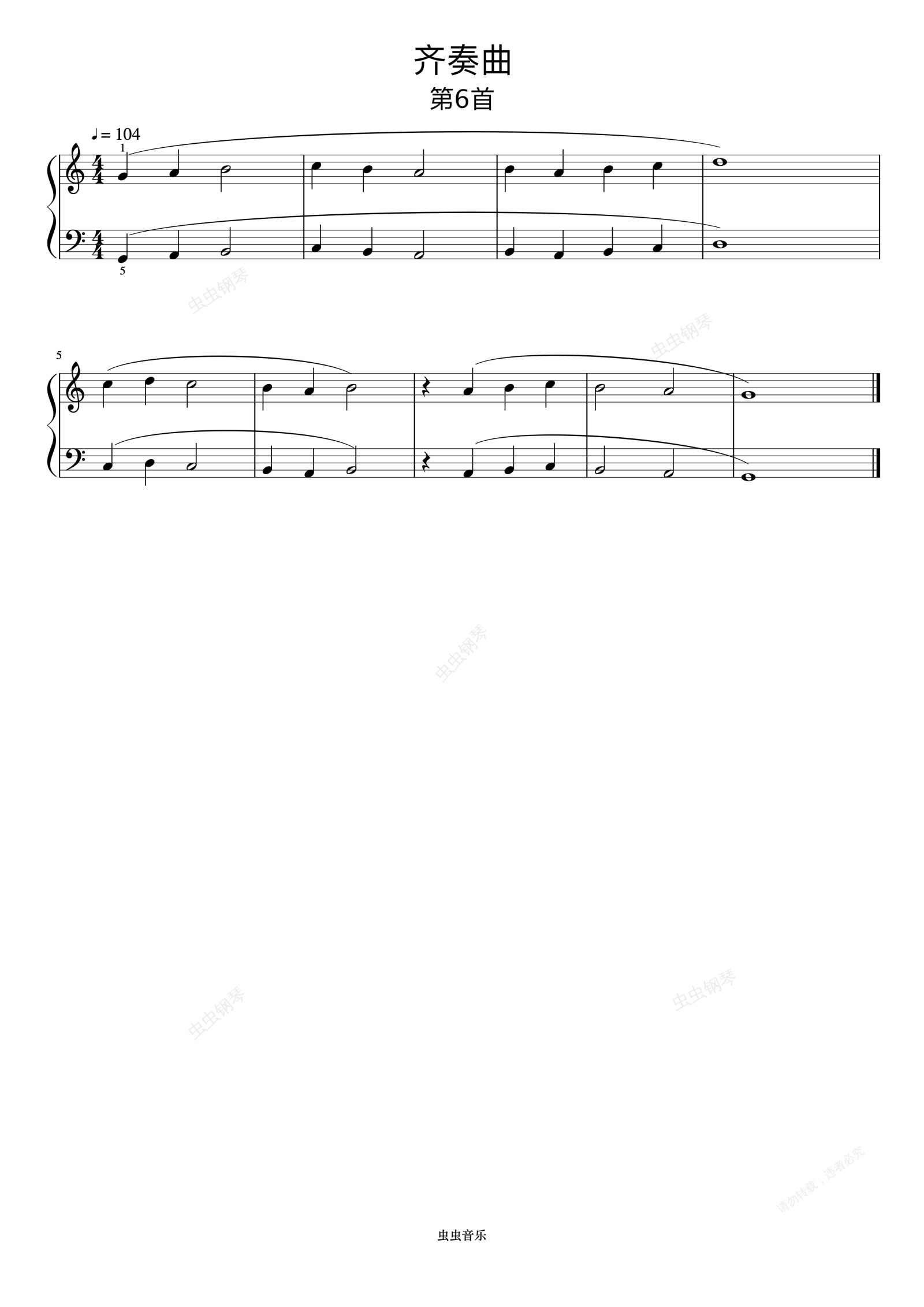钢琴谱:齐奏曲6《巴托克小宇宙钢琴教程1》