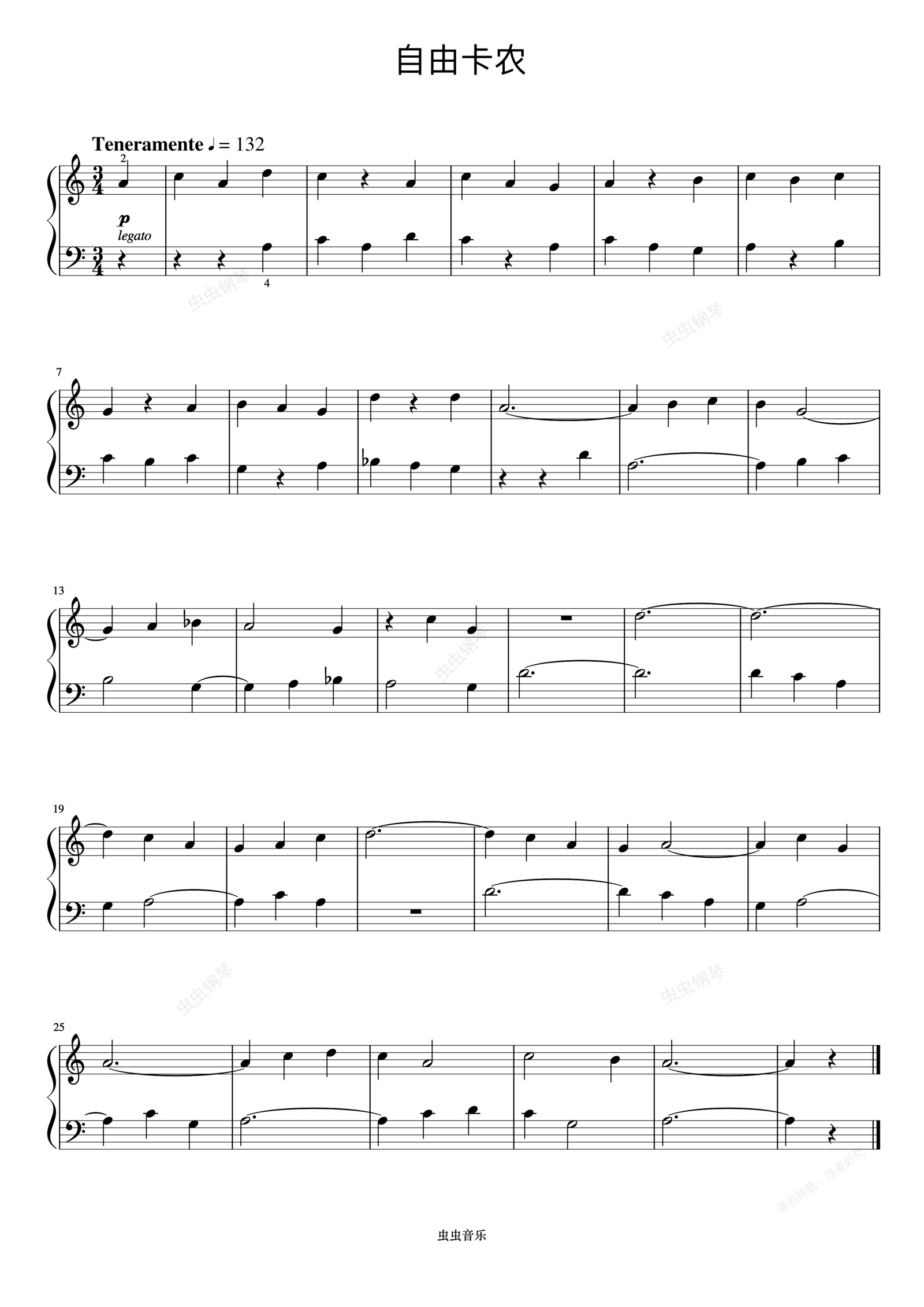 钢琴谱:自由卡农《巴托克小宇宙钢琴教程1》