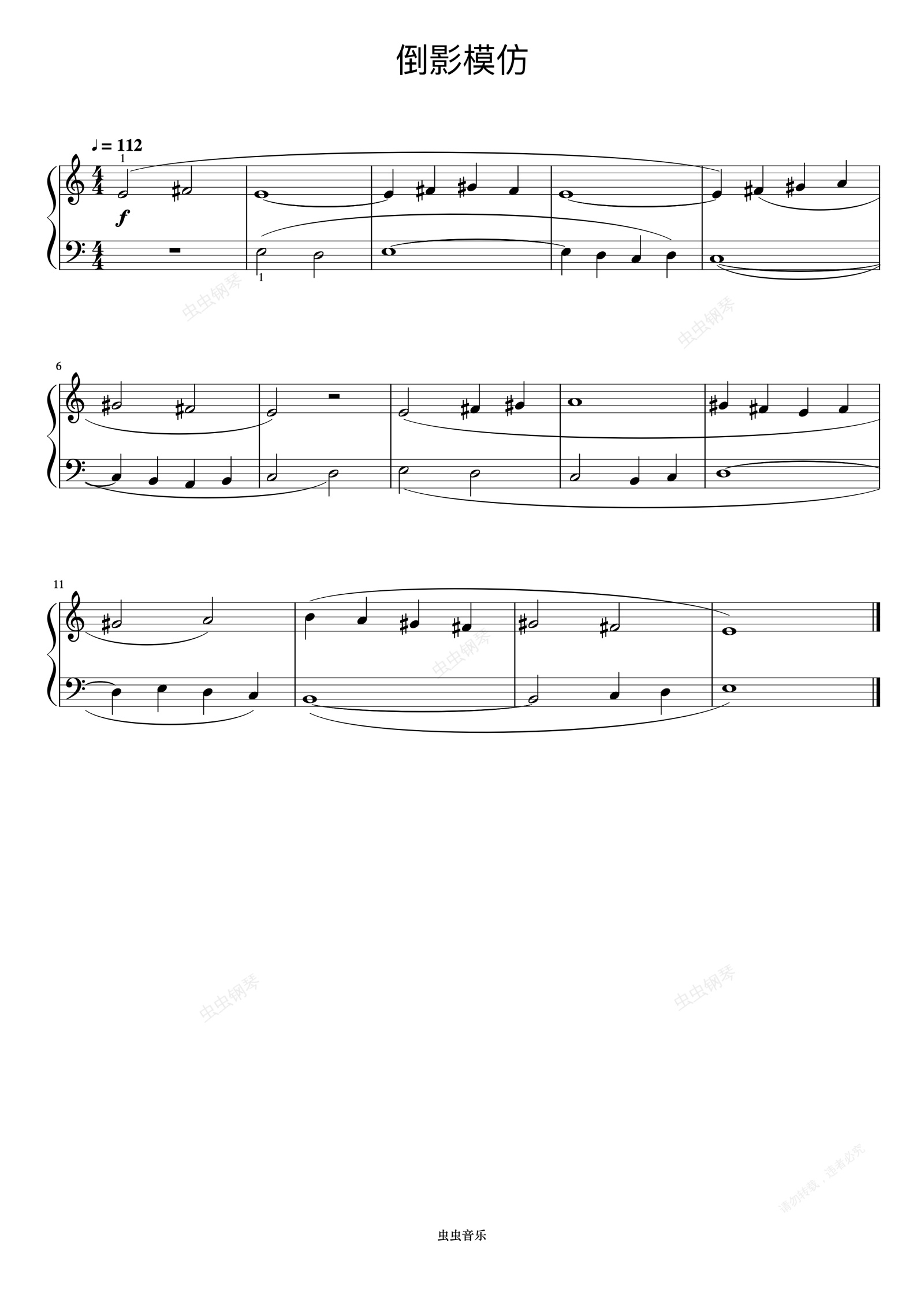 钢琴谱:倒影模仿《巴托克小宇宙钢琴教程1》