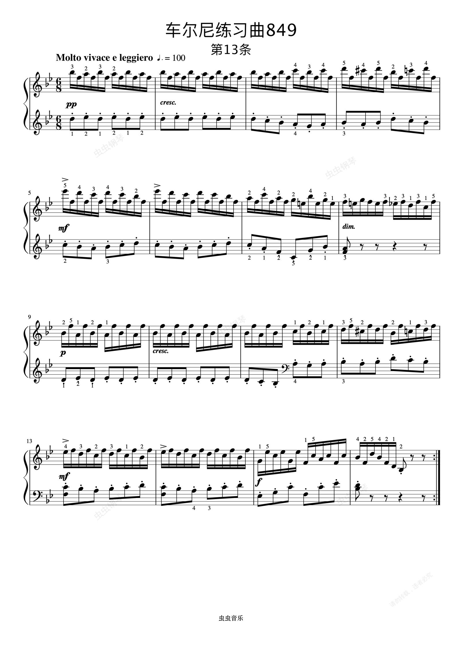 钢琴谱:第13首《车尔尼钢琴流畅练习曲 作品849》